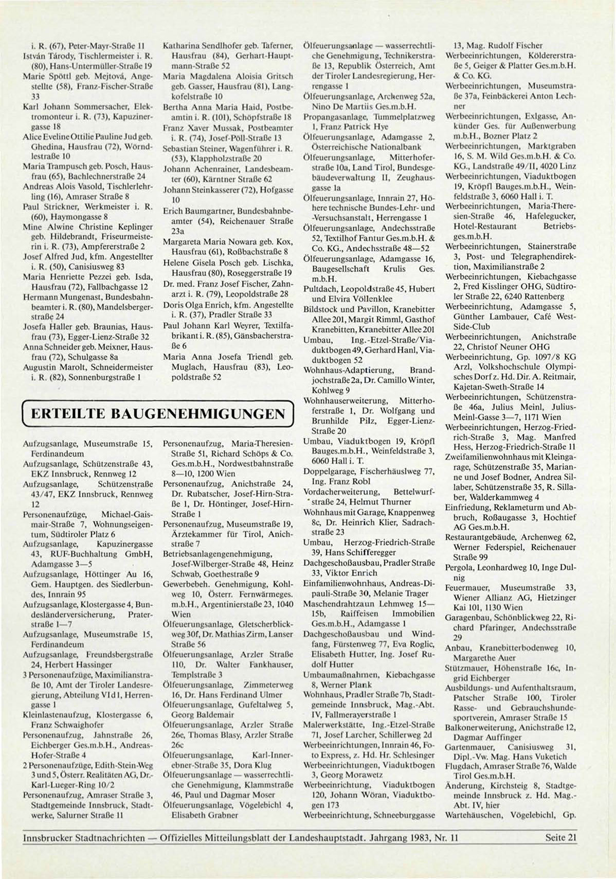 Innsbrucker Stadtnachrichten — Offizielles Mitteilungsblatt der Landeshauptstadt. Jahrgang 1983, Nr. 11