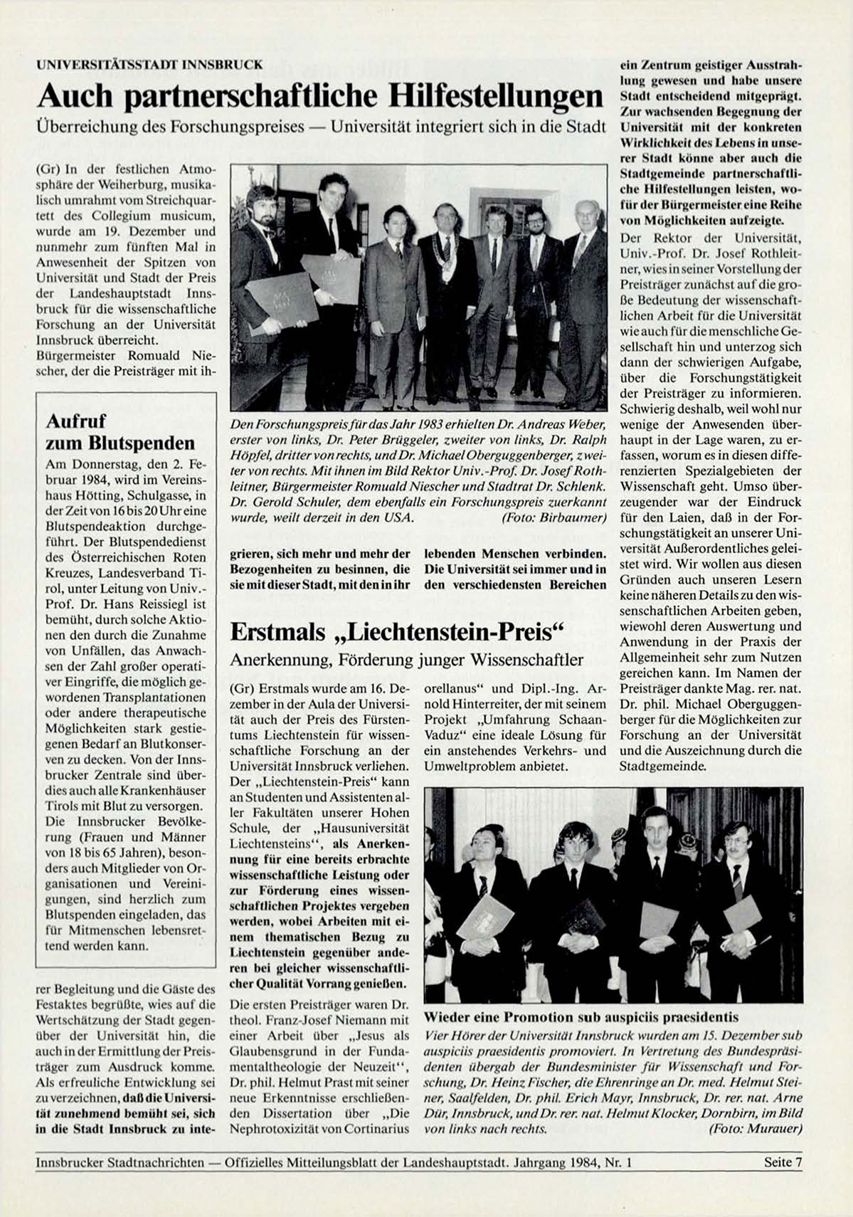 I n n s b r u c k e r S t a d t n a c h r i c h t e n — O f f i z i e l l e s M i t t e i l u n g s b l a t t der L a n d e s h a u p t s t a d t . J a h r g a n g 1984, N r . 1