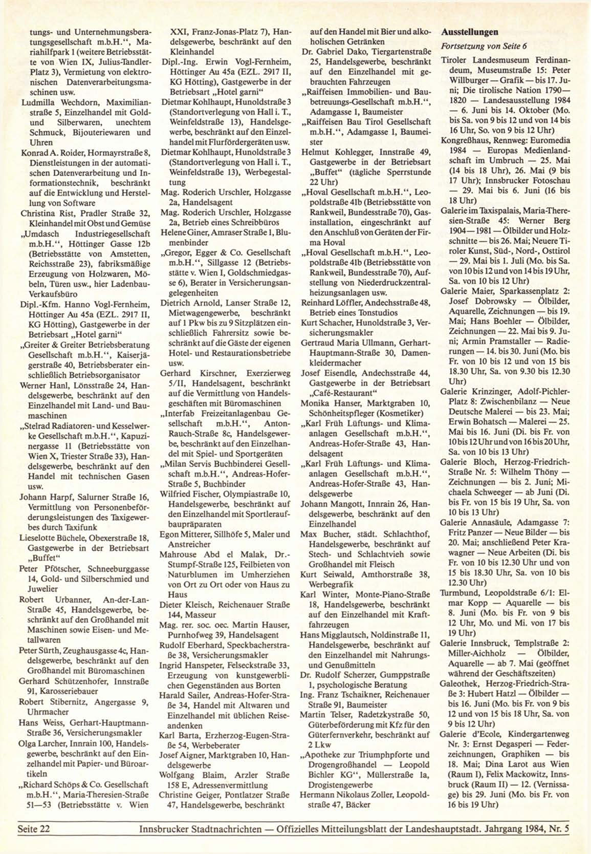 Innsbrucker Stadtnachrichten — Offizielles Mitteilungsblatt der Landeshauptstadt. Jahrgang 1984, Nr. 5