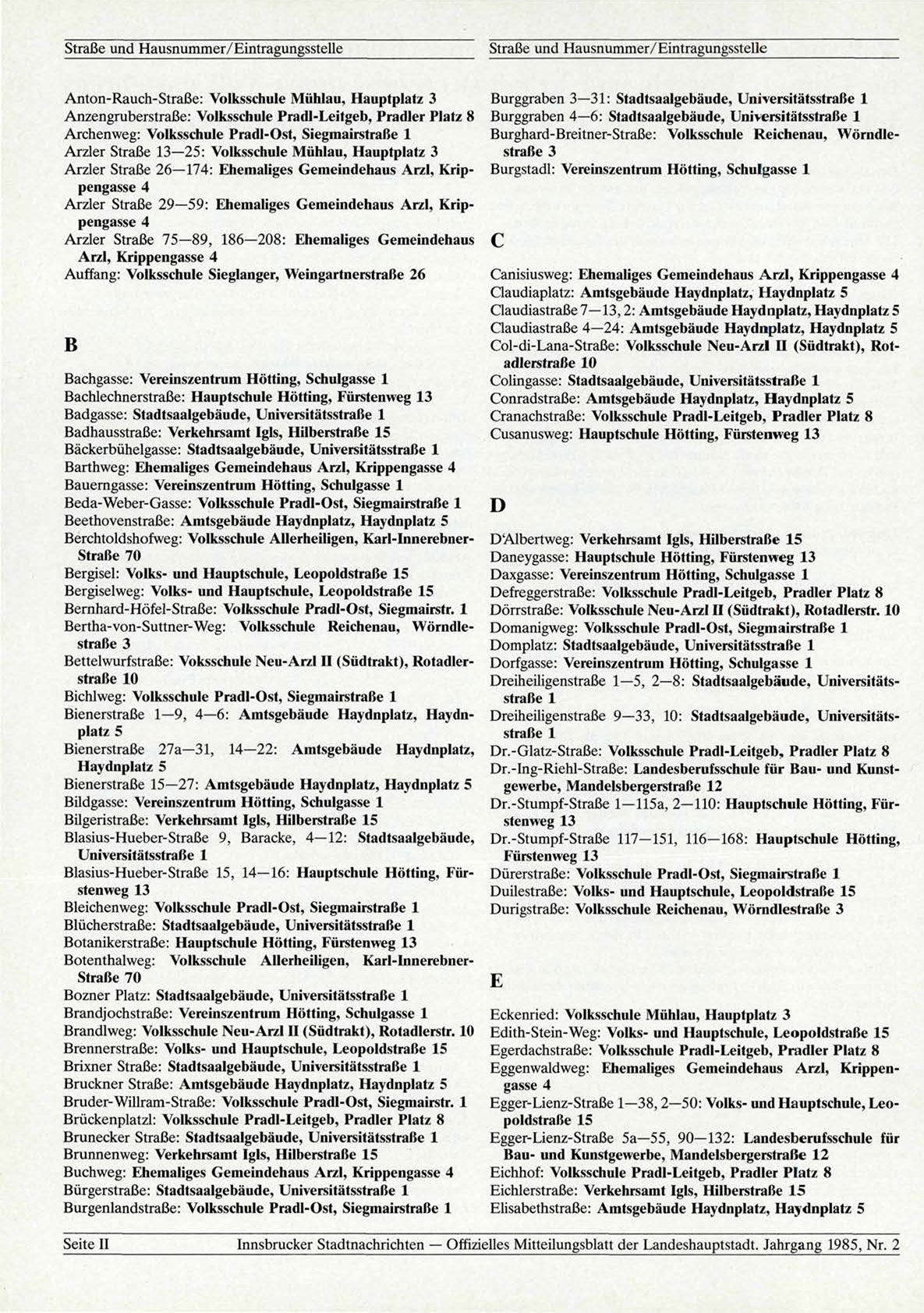 Innsbrucker Stadtnachrichten — Offizielles Mitteilungsblatt der Landeshauptstadt. Jahrgang 1985, Nr. 2