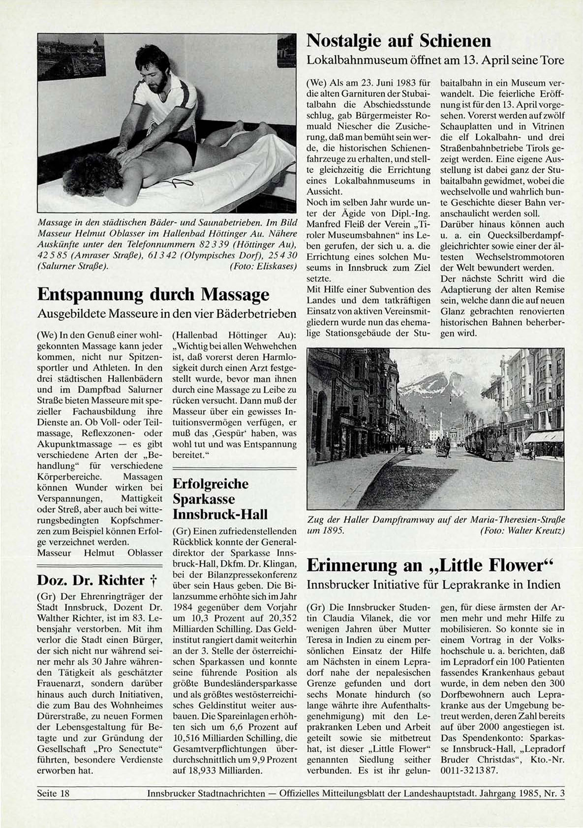 Innsbrucker Stadtnachrichten — Offizielles Mitteilungsblatt der Landeshauptstadt. Jahrgang 1985, Nr. 3