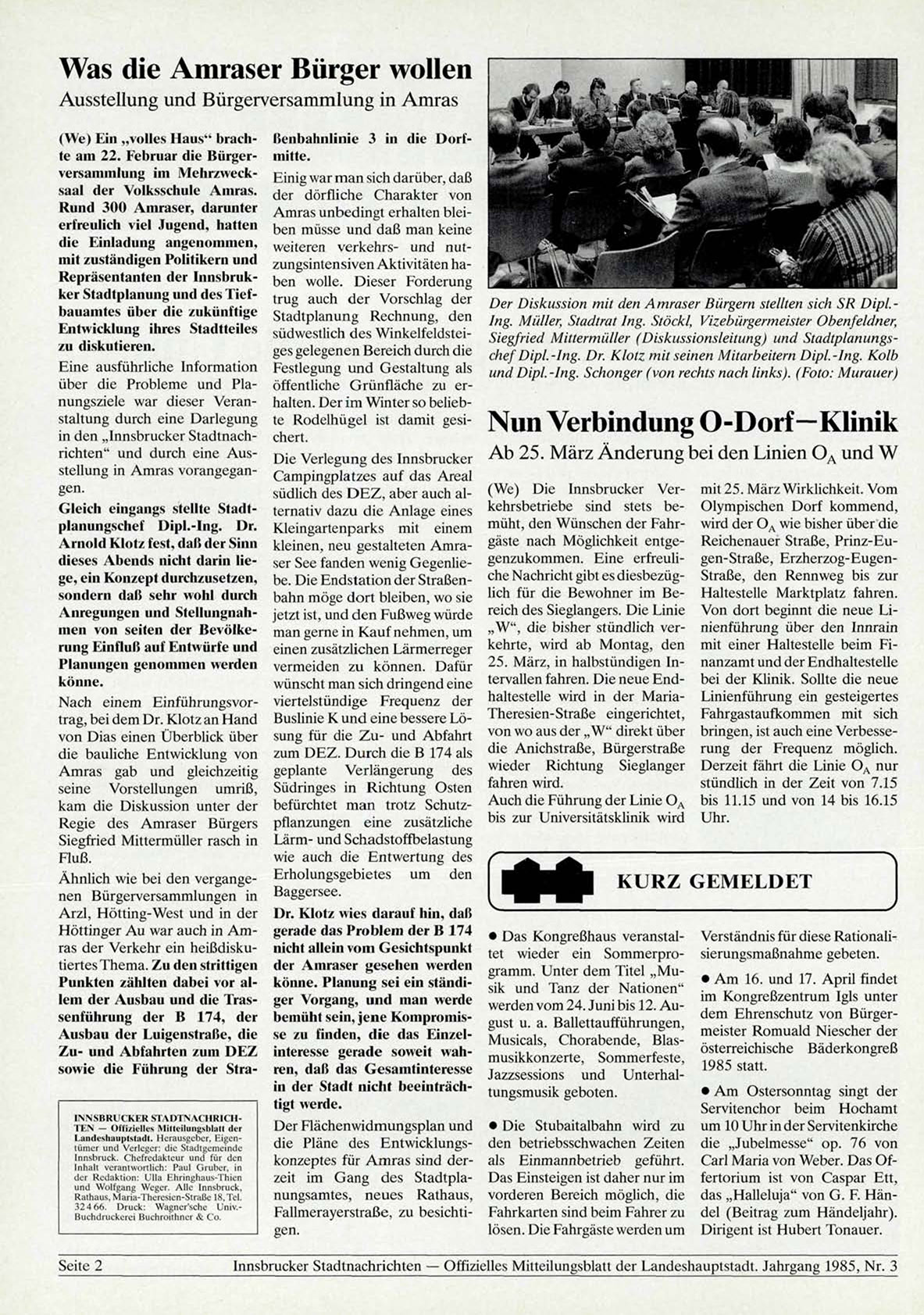 Innsbrucker Stadtnachrichten — Offizielles Mitteilungsblatt der Landeshauptstadt. Jahrgang 1985, Nr. 3