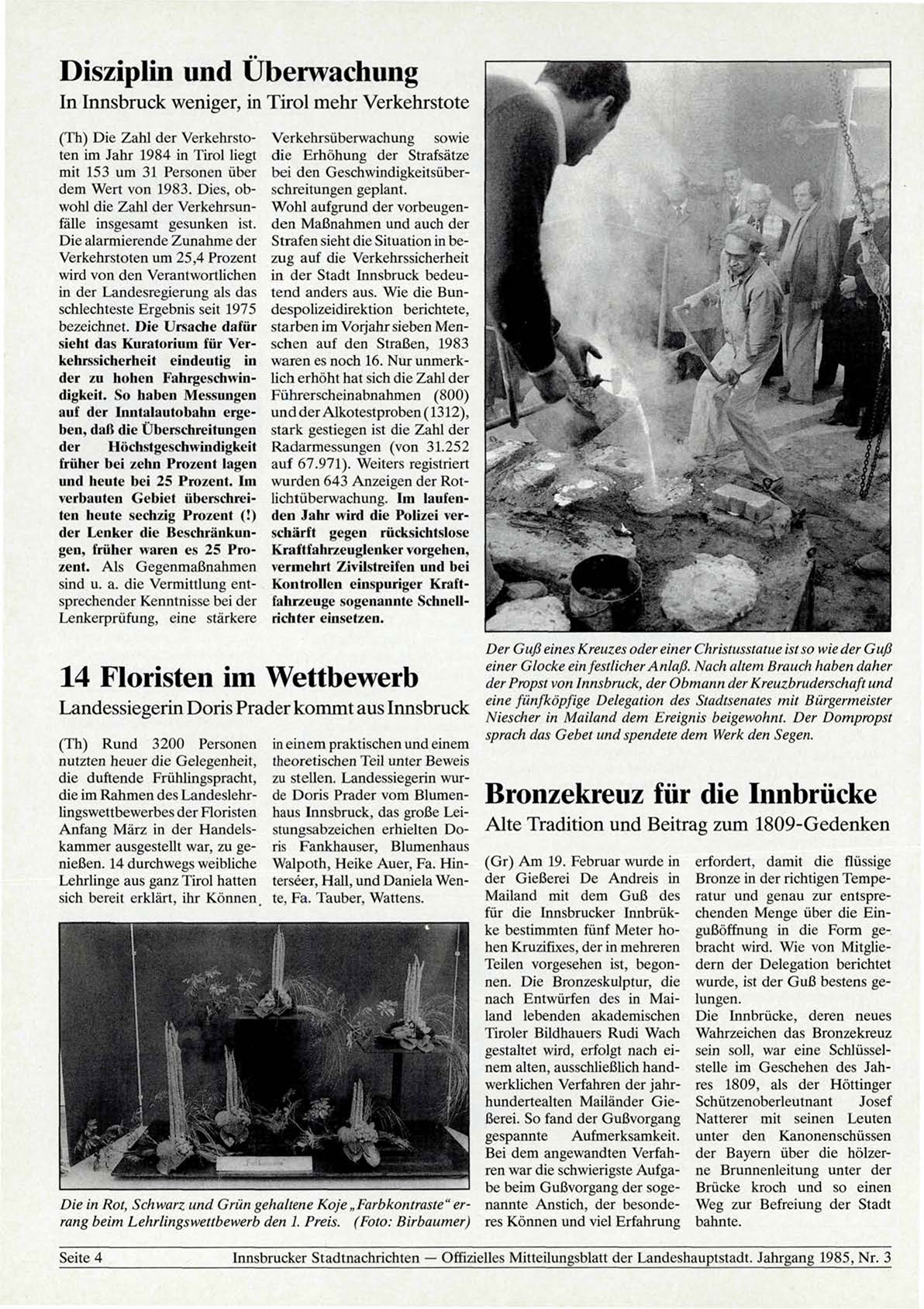 Innsbrucker Stadtnachrichten — Offizielles Mitteilungsblatt der Landeshauptstadt. Jahrgang 1985, Nr. 3
