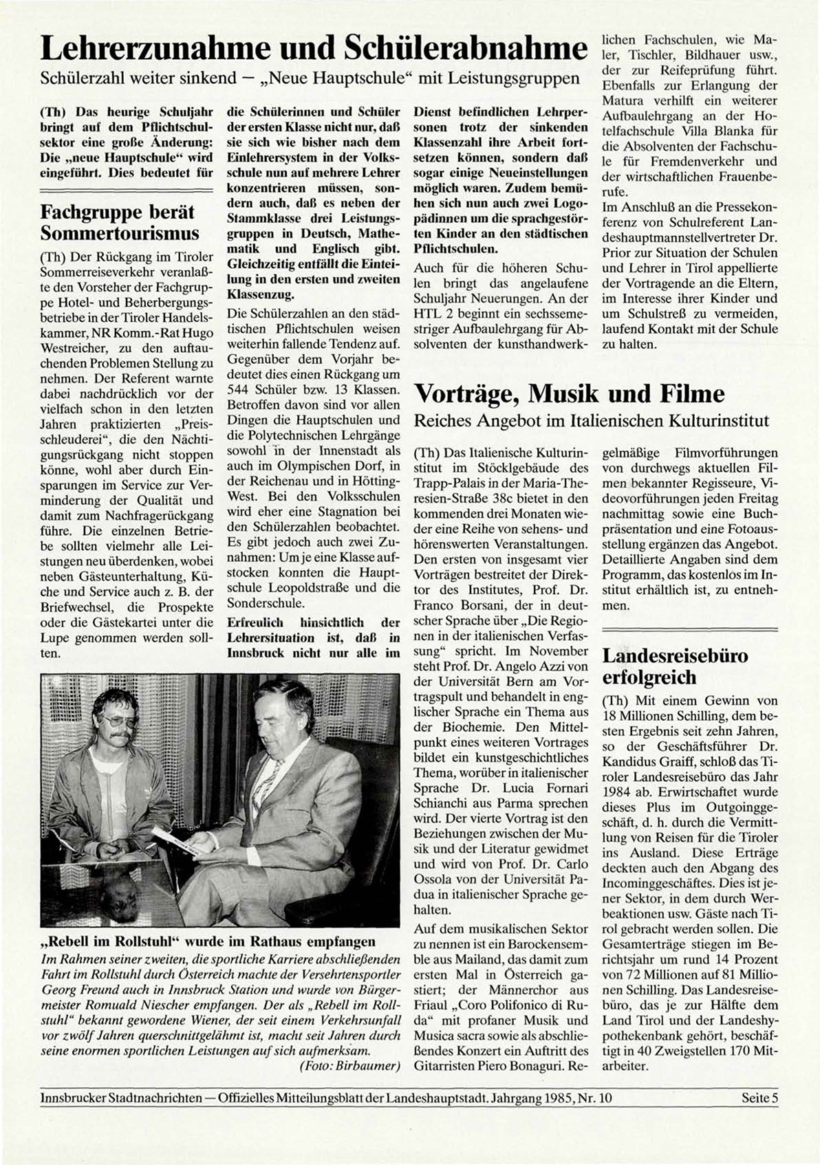 Innsbrucker Stadtnachrichten — Offizielles Mitteilungsblatt der Landeshauptstadt. Jahrgang 1985, Nr. 10