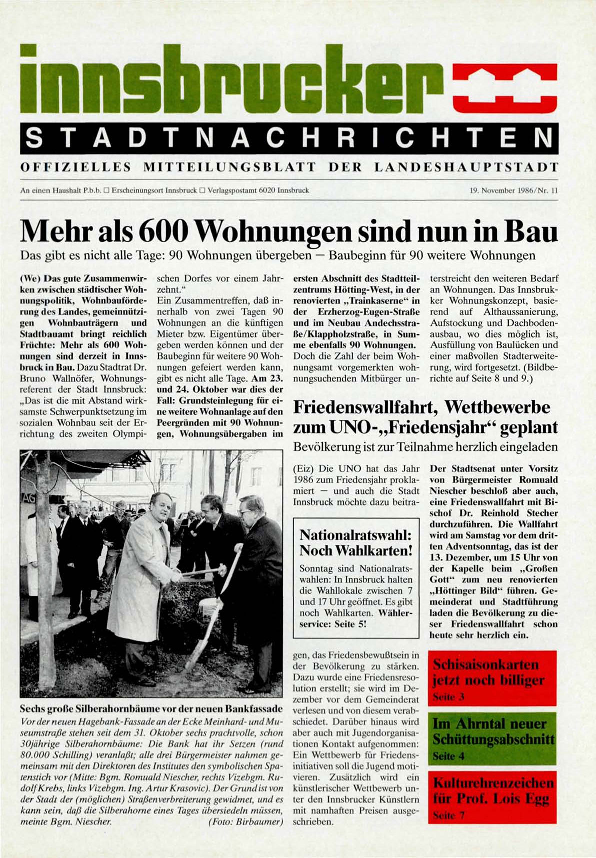Hniiio Wallnöfer, WohnungsR"le reut der Stadt Innsbruck: