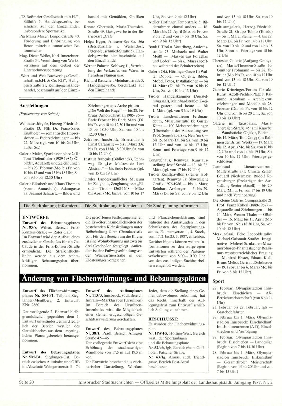 Innsbrucker Stadtnachrichten — Offizielles Mitteilungsblatt der Landeshauptstadt. Jahrgang 1987, Nr. 2
