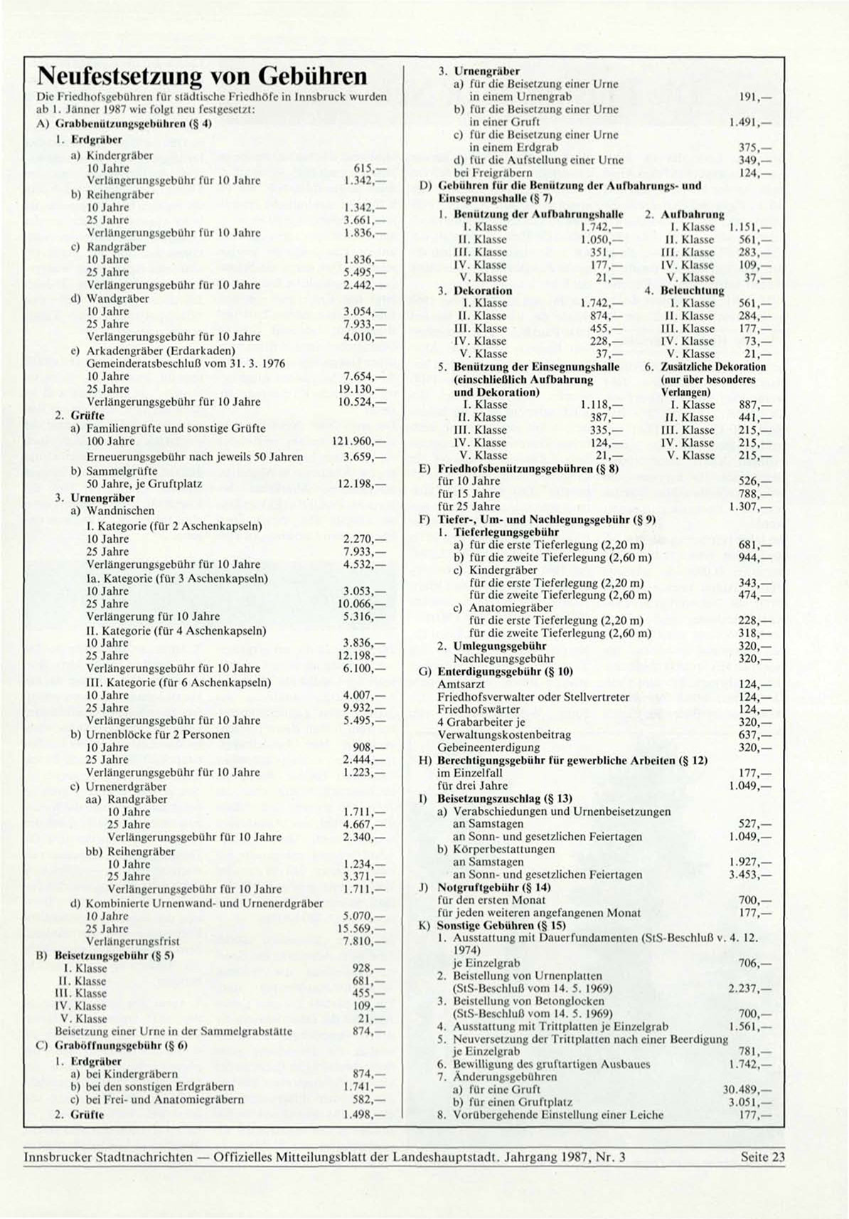 Innsbrucker Stadtnachrichten — Offizielles Mitteilungsblatt der Landeshauptstadt. Jahrgang 1987, Nr. 3