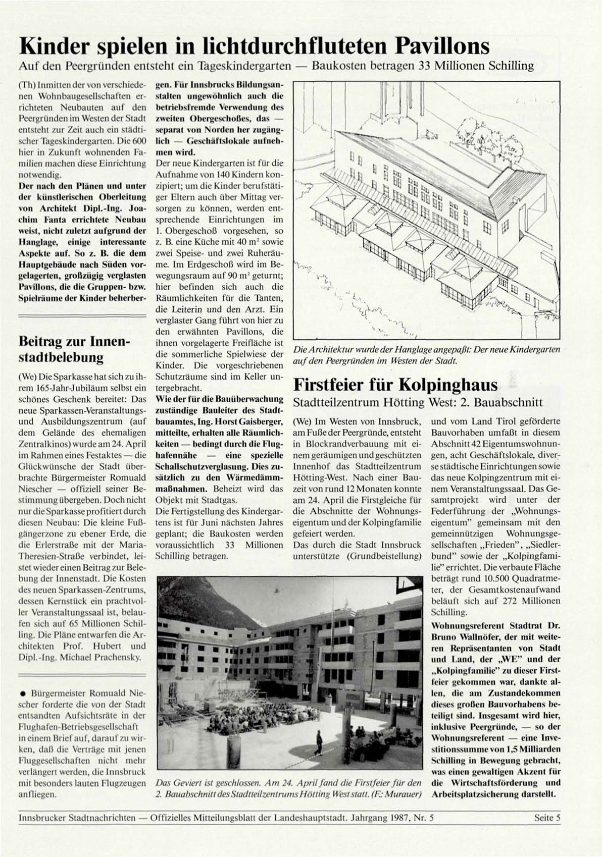 Innsbrucker Stadtnachrichten — Offizielles Mitteilungsblatt der Landeshauptstadt. Jahrgang 1987, Nr. 5