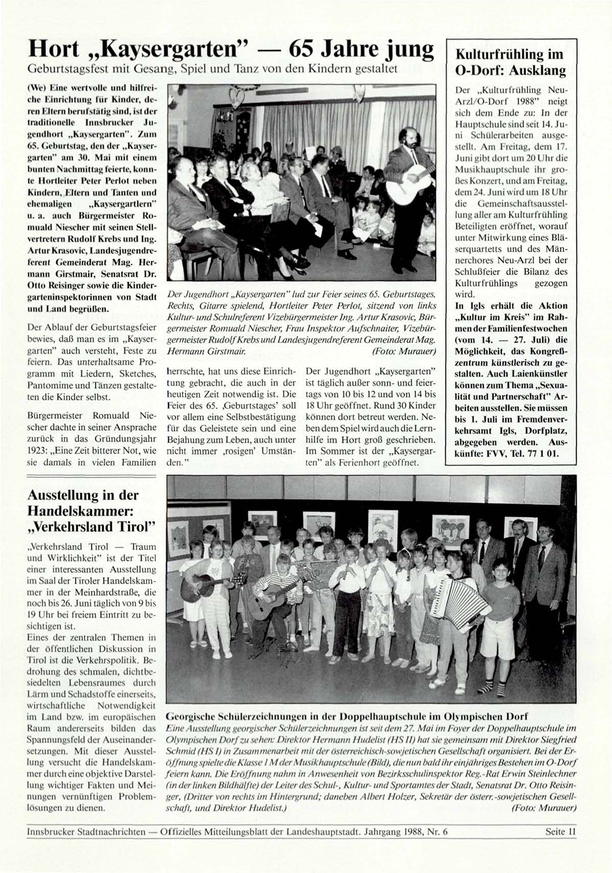 Innsbrucker Stadtnachrichten — Offizielles Mitteilungsblatt der Landeshauptstadt. Jahrgang 1988, Nr. 6