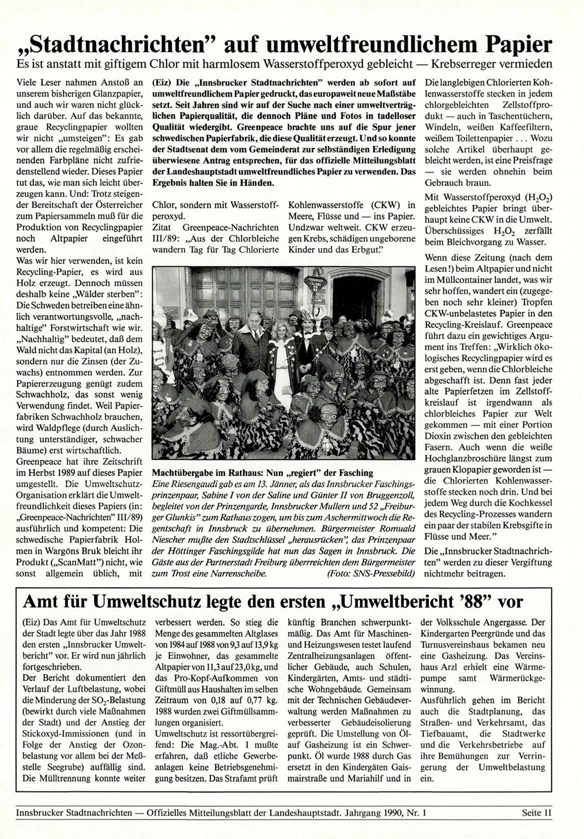 Innsbrucker Stadtnachrichten — Offizielles Mitteilungsblatt der Landeshauptstadt. Jahrgang 1990, Nr. 1