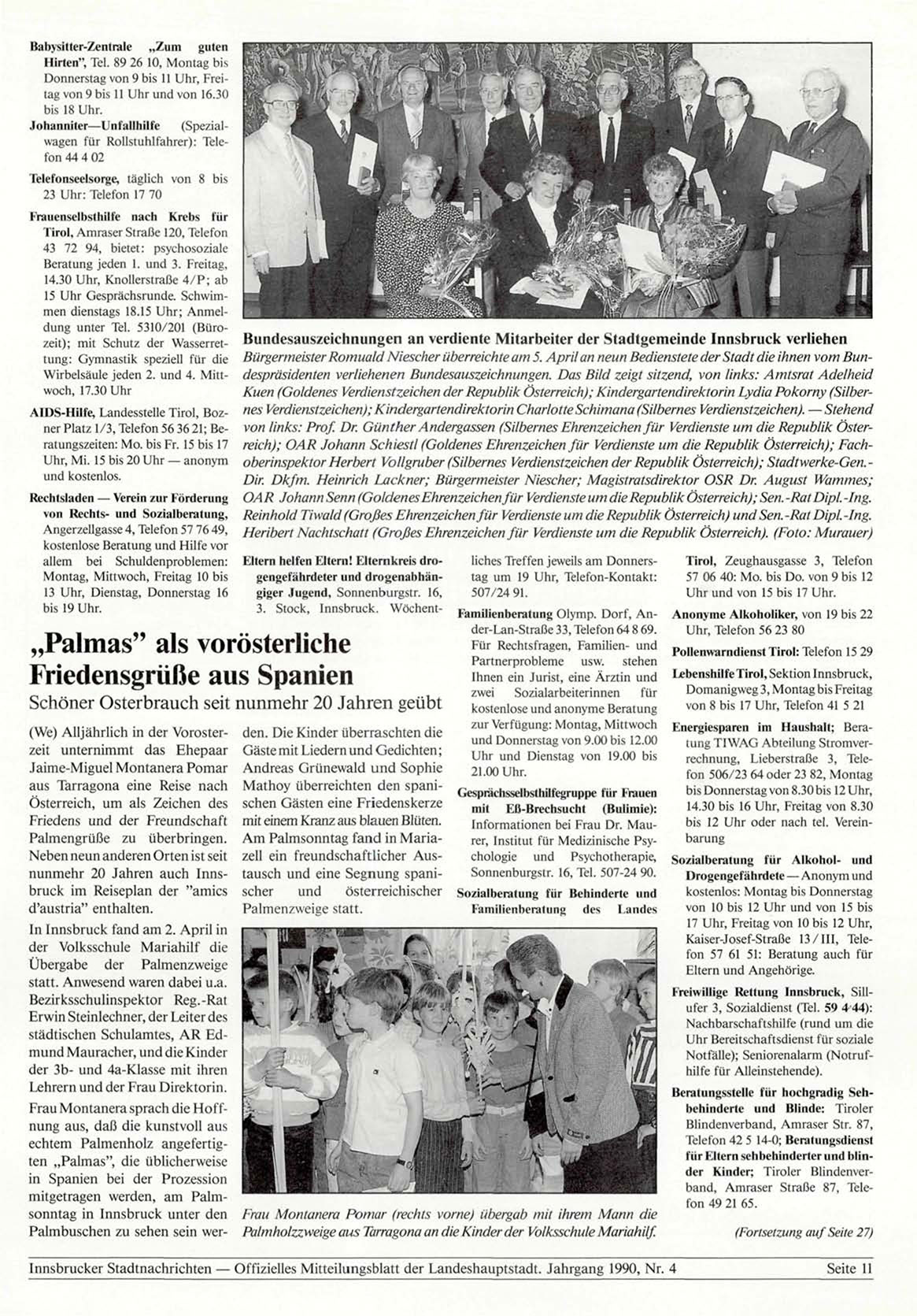 Innsbrucker Stadtnachrichten — Offizielles Mitteilungsblatt der Landeshauptstadt. Jahrgang 1990, Nr. 4