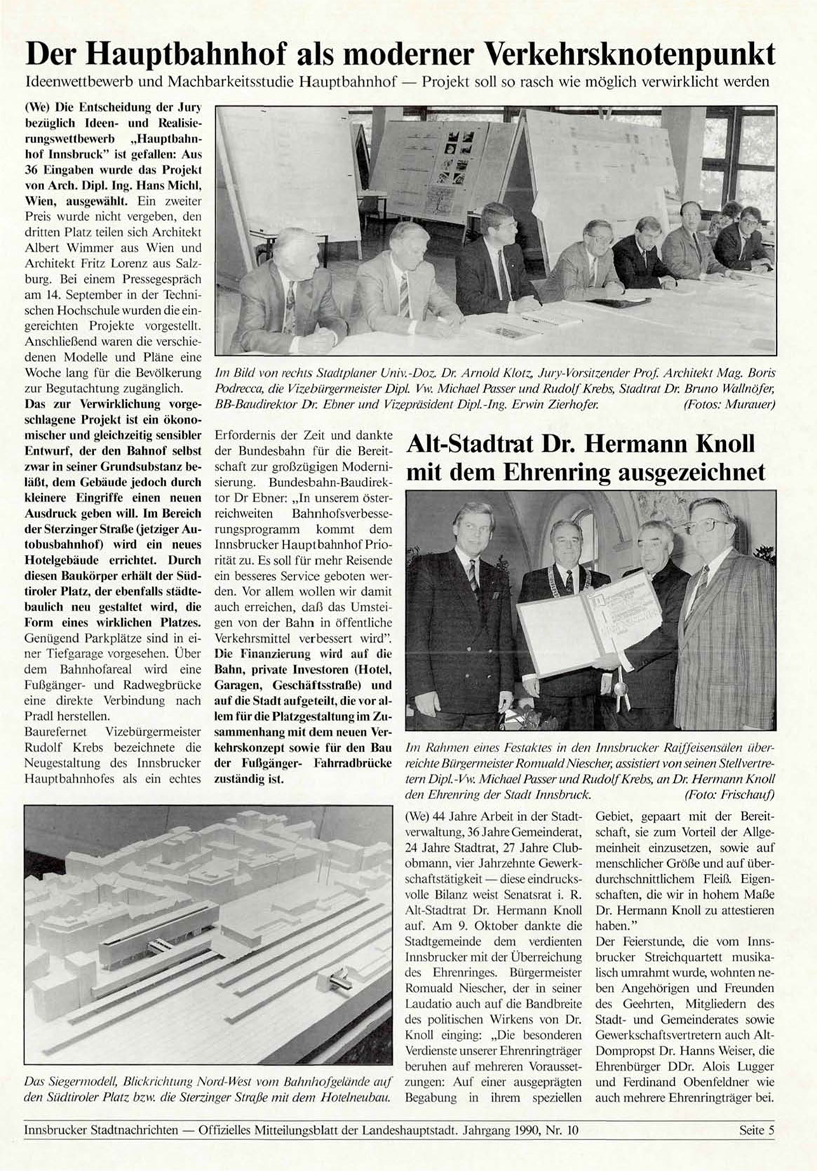 Innsbrucker Stadtnachrichten — Offizielles Mitteilungsblatt der Landeshauptstadt. Jahrgang 1990, Nr. 10