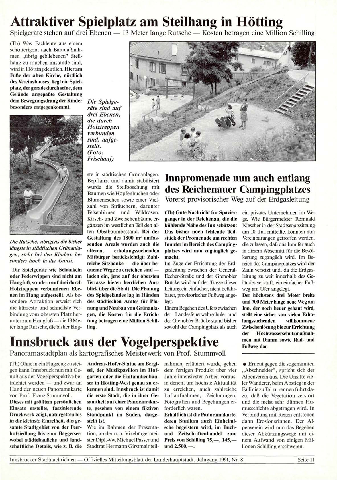 Innsbrucker Stadtnachrichten — Offizielles Mitteilungsblatt der Landeshauptstadt. Jahrgang 1991, Nr. 8