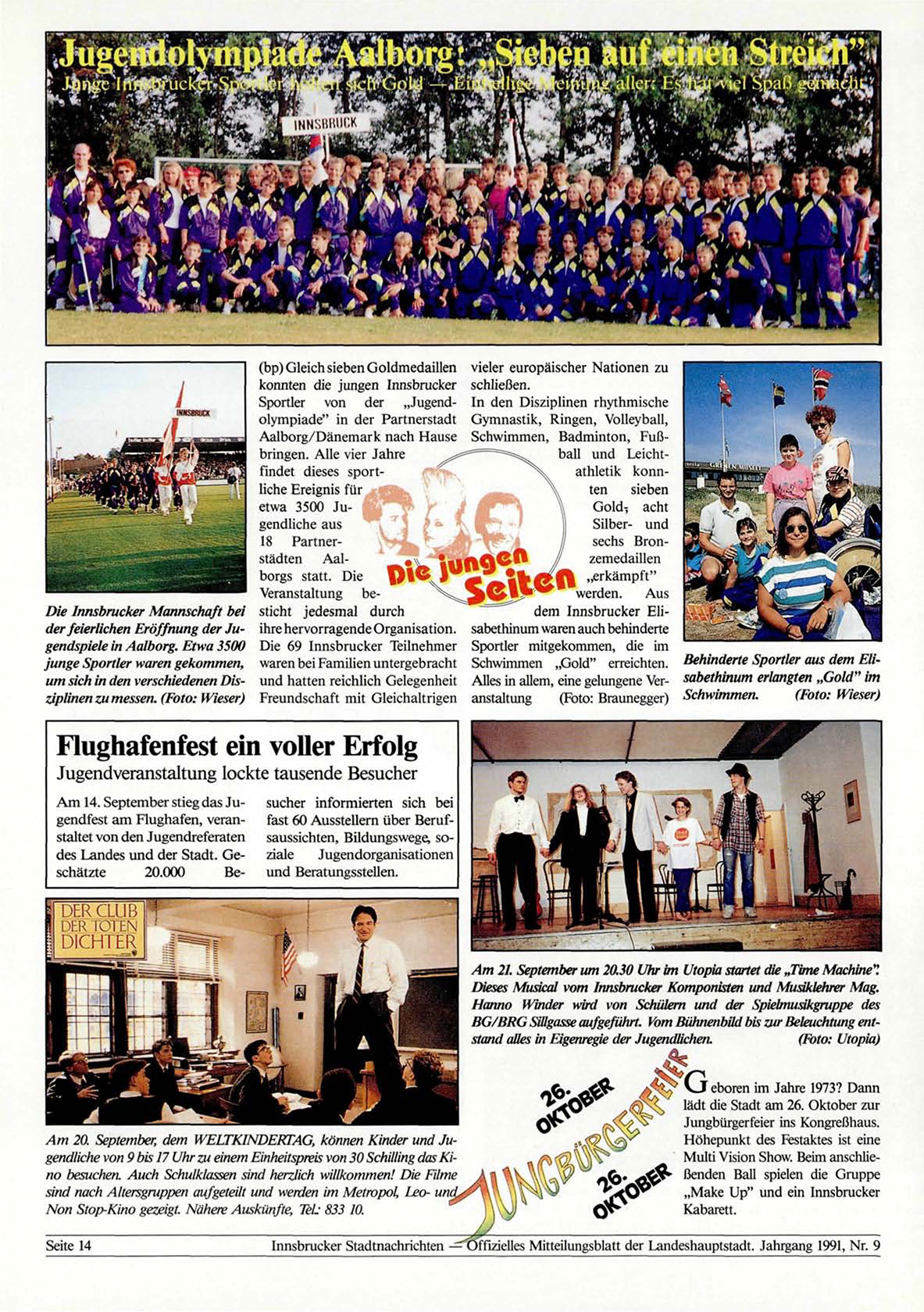 Innsbrucker Stadtnachrichten —X5ffizielles Mitteilungsblatt der Landeshauptstadt. Jahrgang 1991, Nr. 9