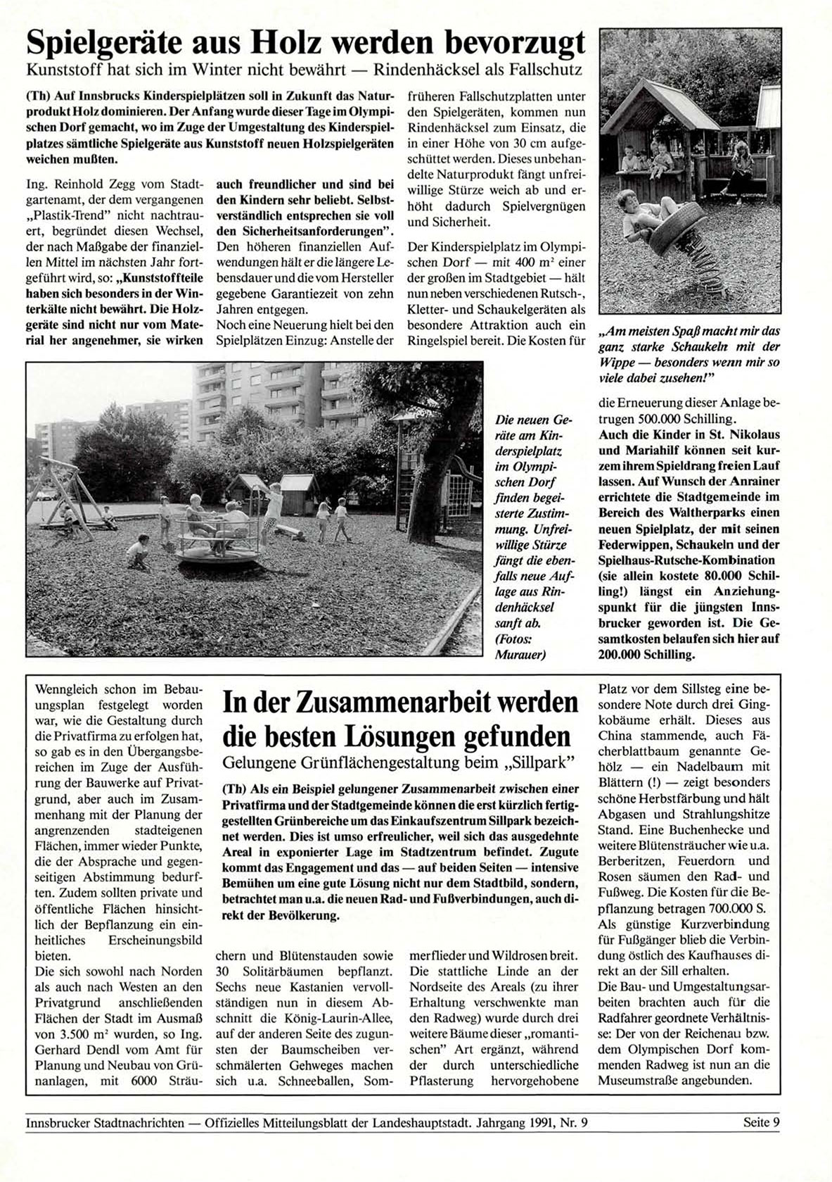 Innsbrucker Stadtnachrichten — Offizielles Mitteilungsblatt der Landeshauptstadt. Jahrgang 1991, Nr. 9