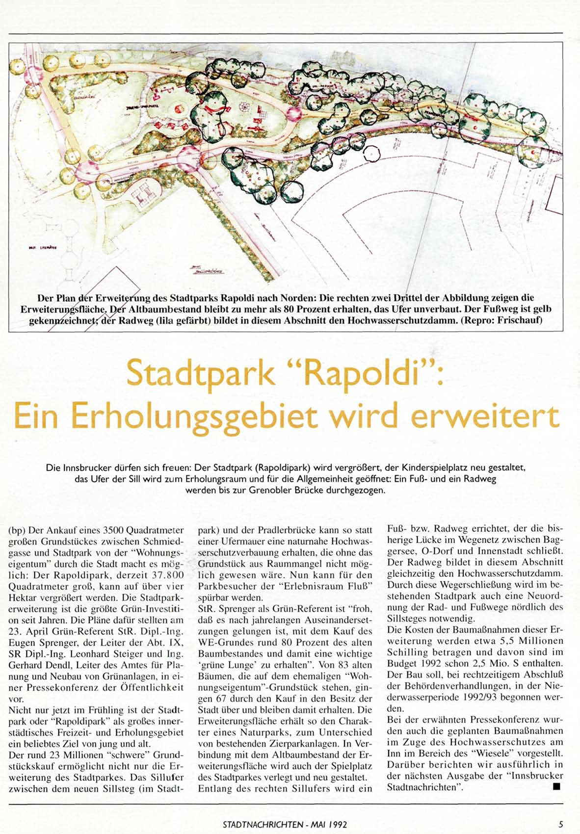 Die Innsbrucker dürfen sich freuen: Der Stadtpark (Rapoldipark) wird vergrößert, der Kinderspielplatz neu gestaltet,