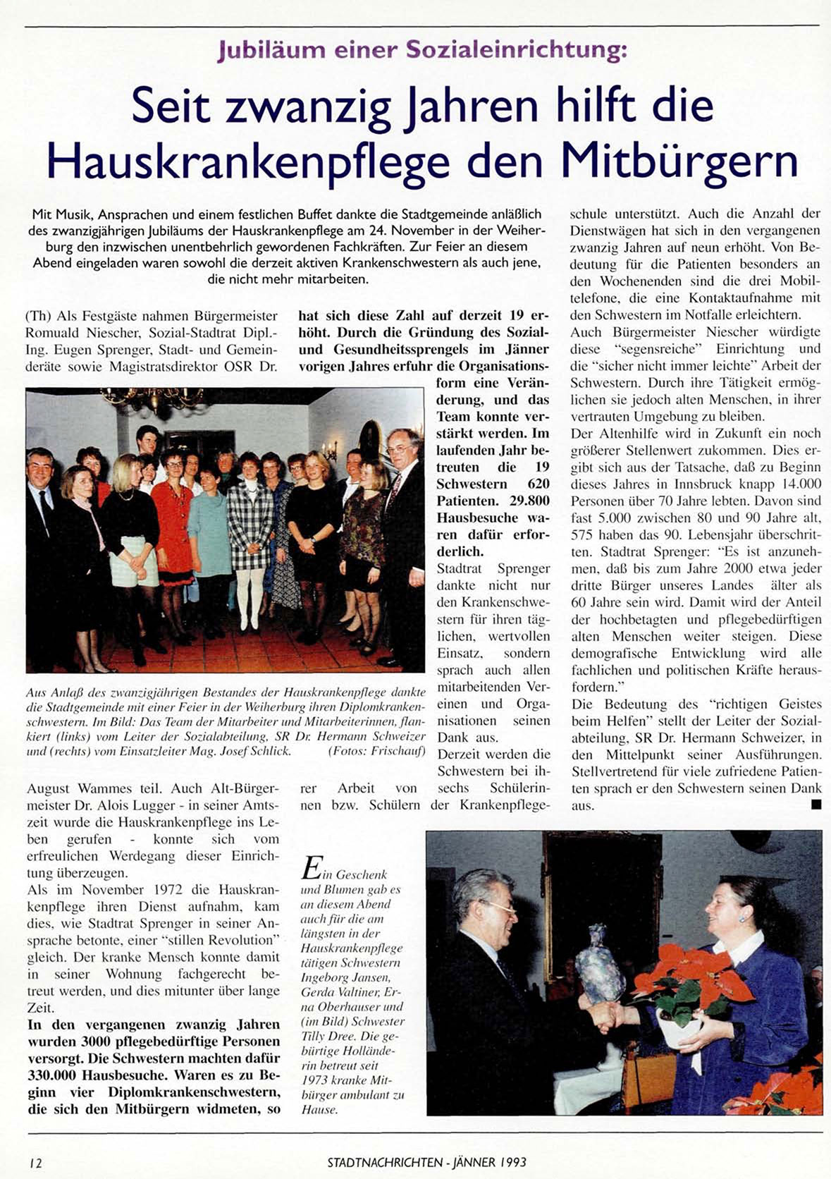 des zwanzigjährigen Jubiläums der Hauskrankenpflege am 24. November in der Weiherburg den inzwischen unentbehrlich gewordenen Fachkräften. Z u r Feier an diesem