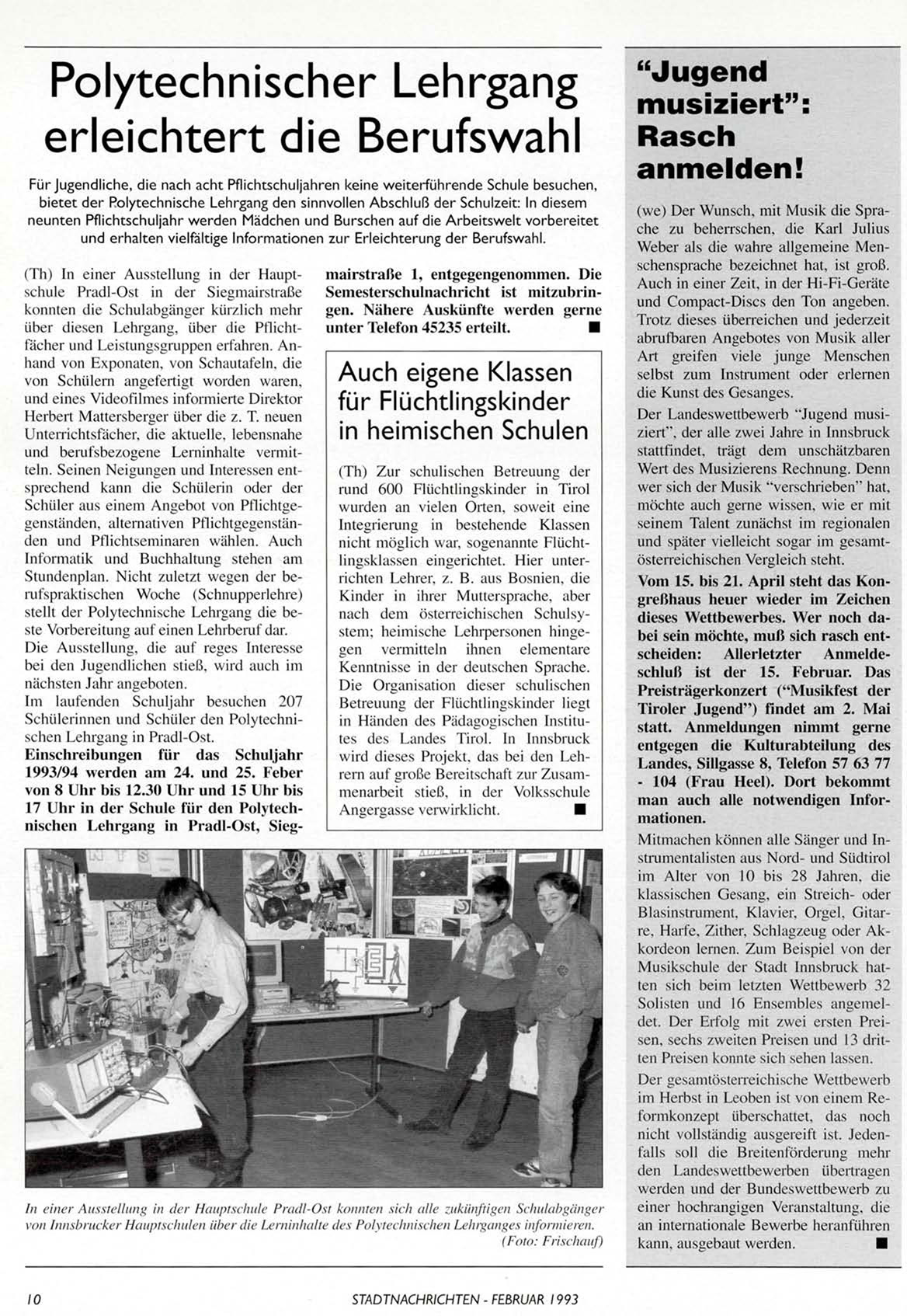 STADTNACHRICHTEN - FEßRUAR 1993