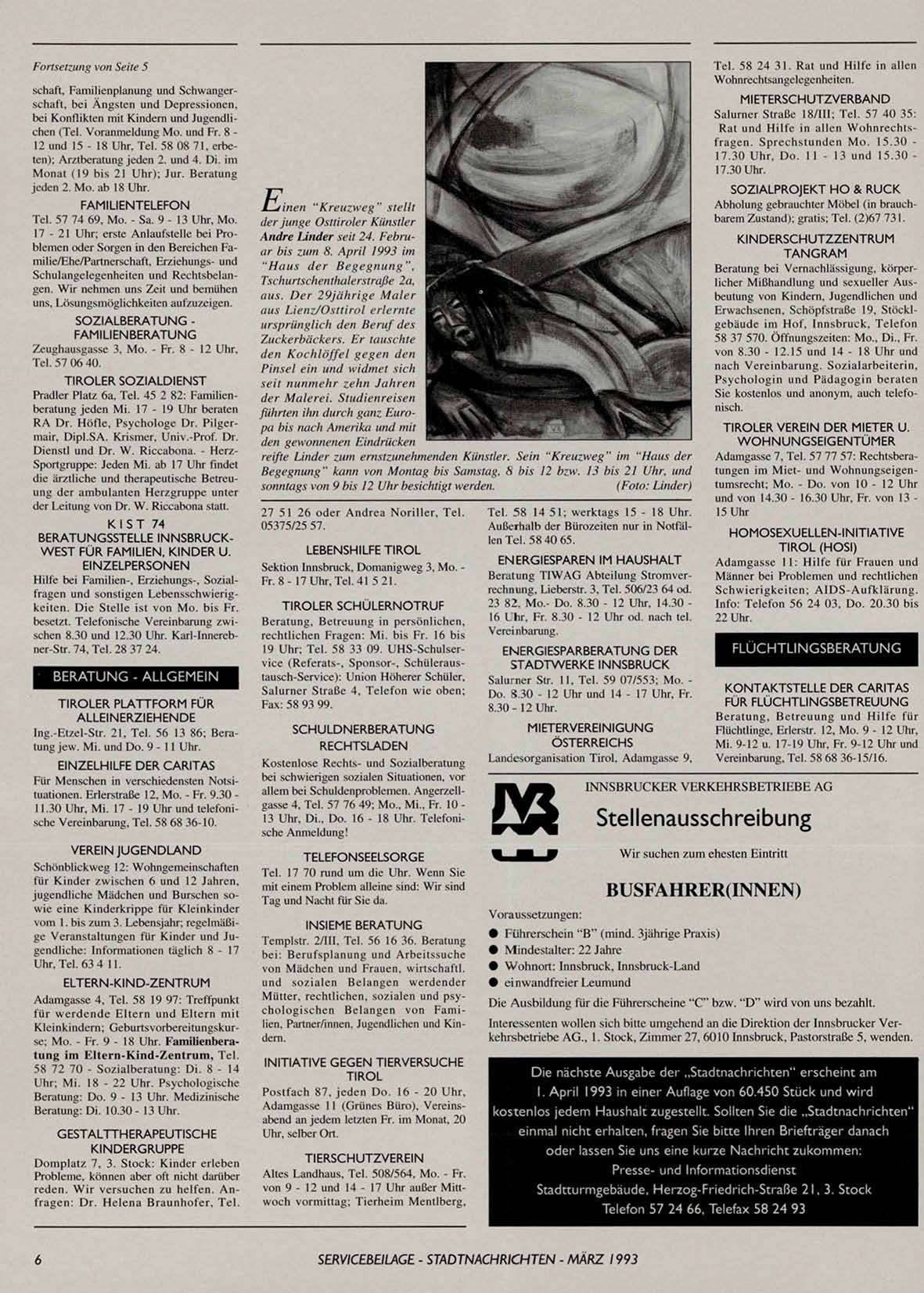 SERVICEBEILAGE - STADTNACHRICHTEN - MÄRZ 1993