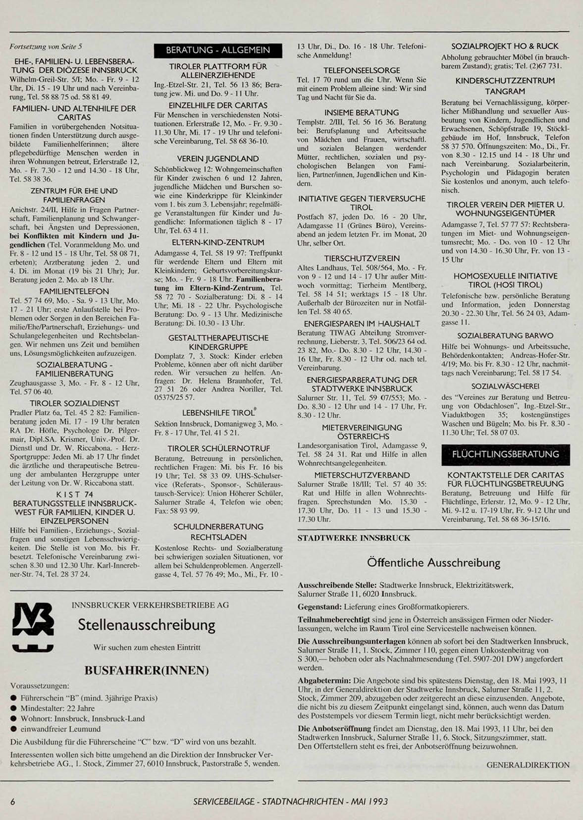 SERVICEBEILAGE - STADTNACHRICHTEN - MAI 1993