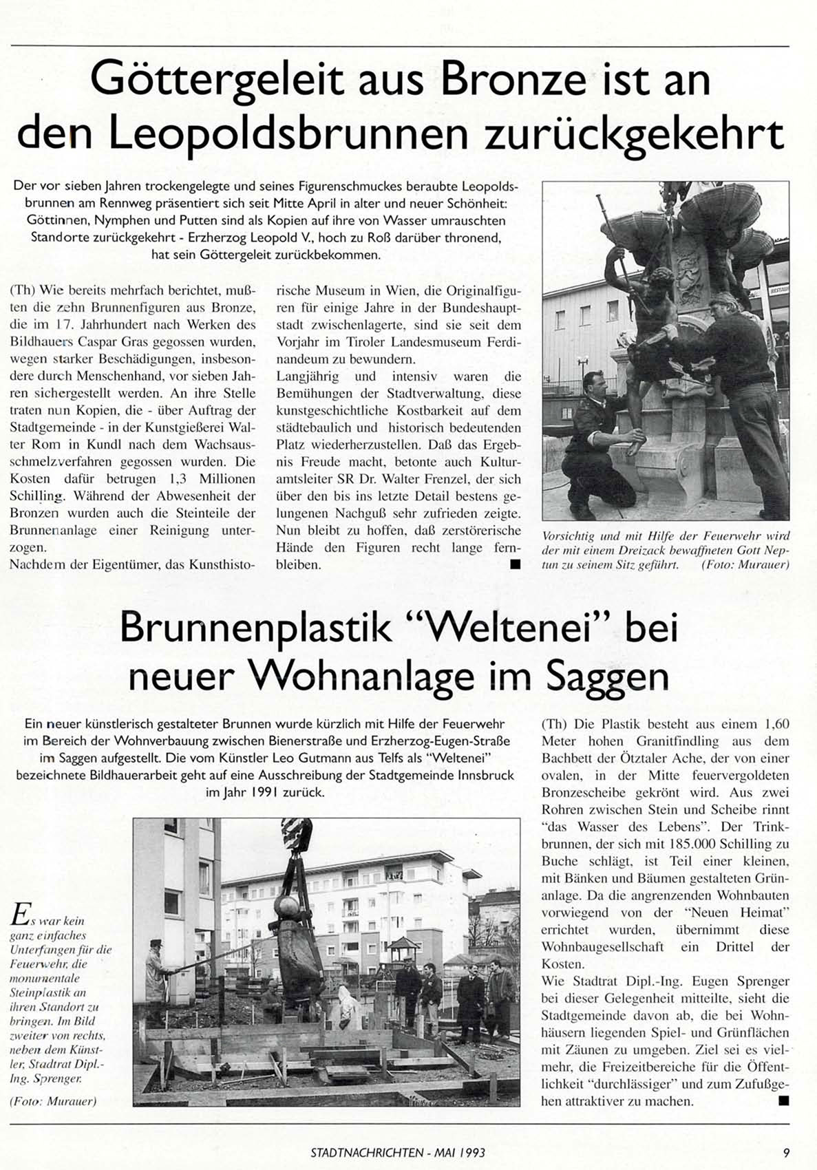 bezeichnete Bildhauerarbeit geht auf eine Ausschreibung der Stadtgemeinde Innsbruck