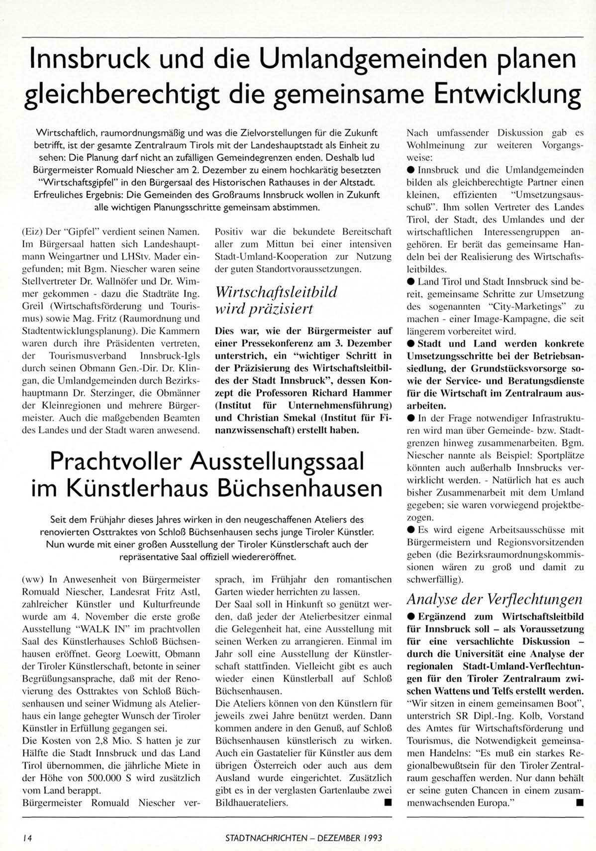 der Präzisierung des Wirtschaftsleitbildes der Stadt Innsbruck", dessen Konzept die Professoren Richard Hammer