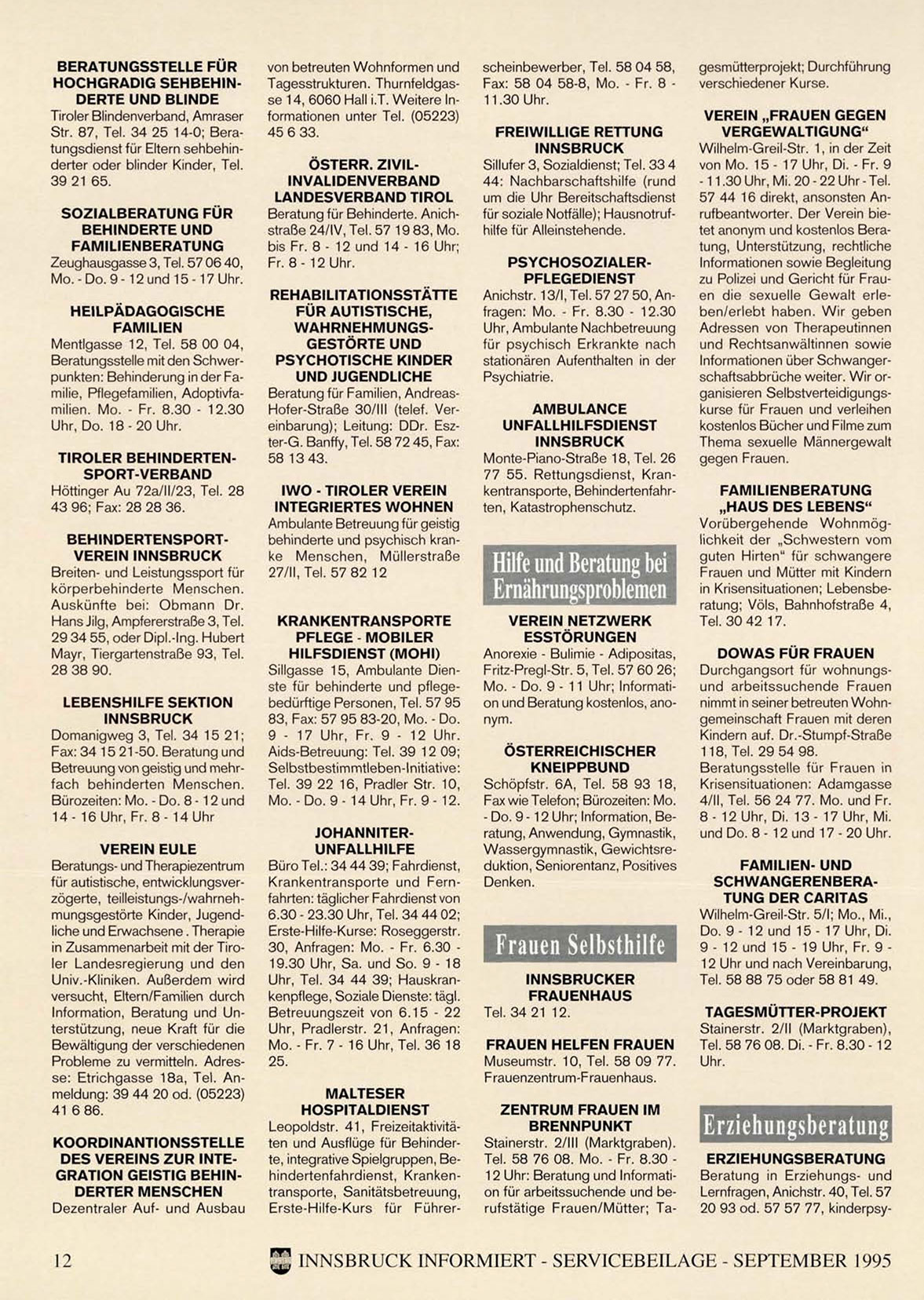 INNSBRUCK INFORMIERT - SERVICEBEILAGE - SEPTEMBER 1995