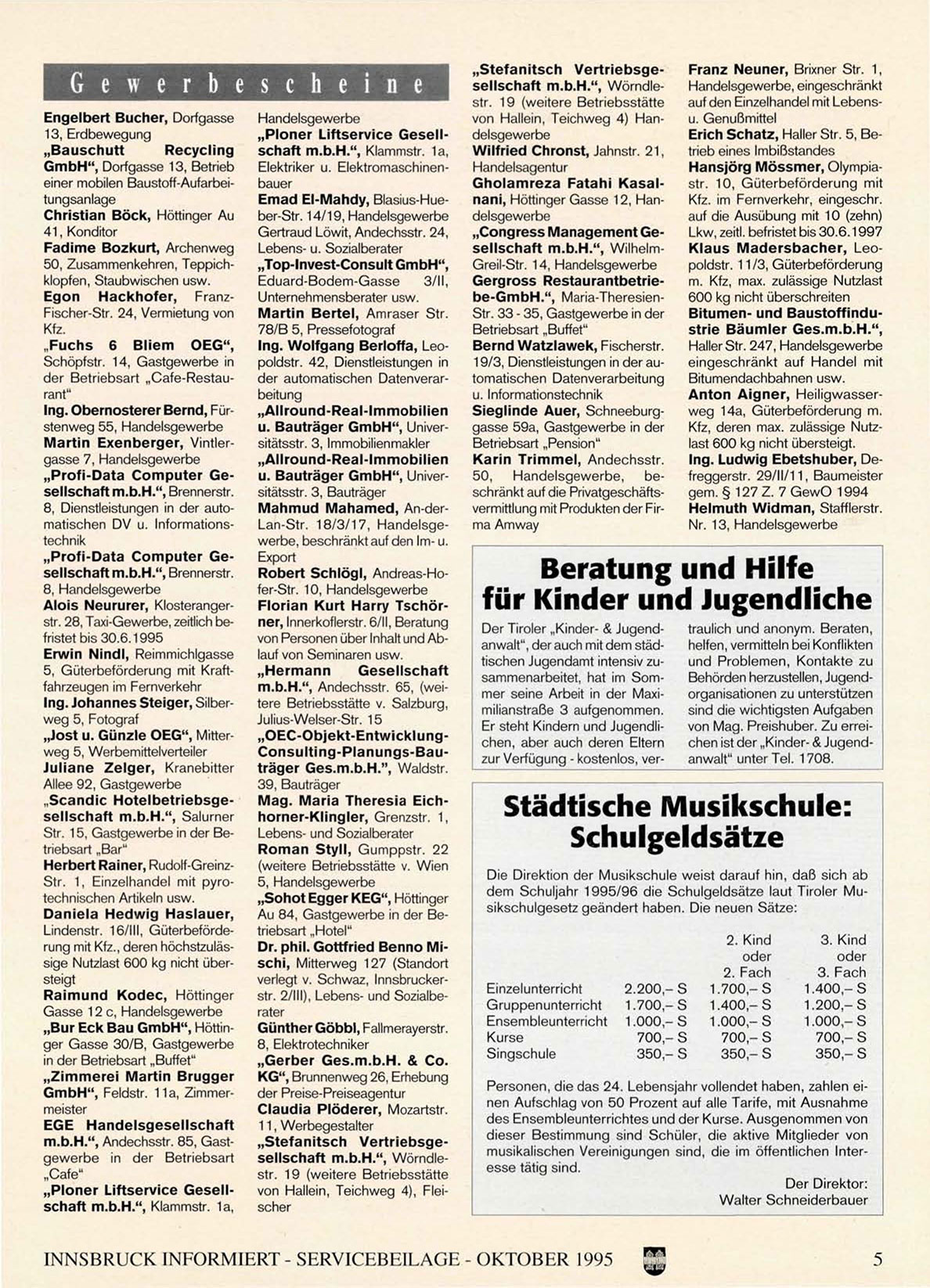 INNSBRUCK INFORMIERT - SERVICEBEILAGE - OKTOBER 1995