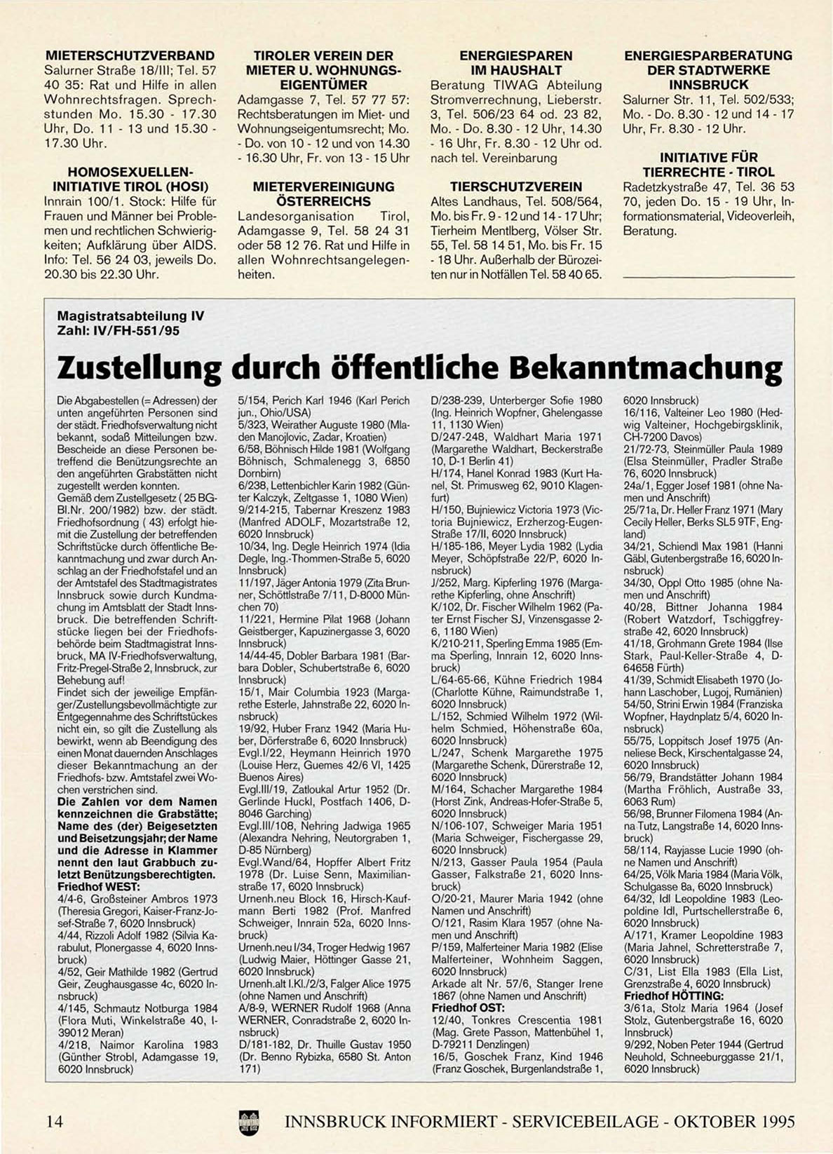 INNSBRUCK INFORMIERT - SERVICEBEILAGE - OKTOBER 1995