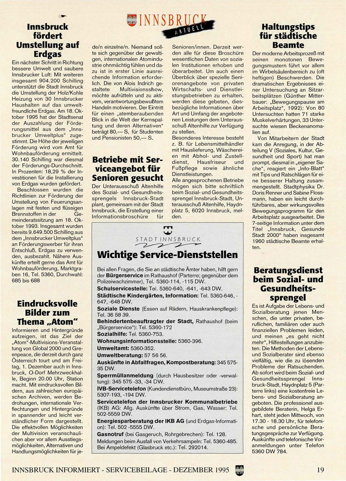 INNSBRUCK INFORMIERT - SERVICEBEILAGE - DEZEMBER 1995