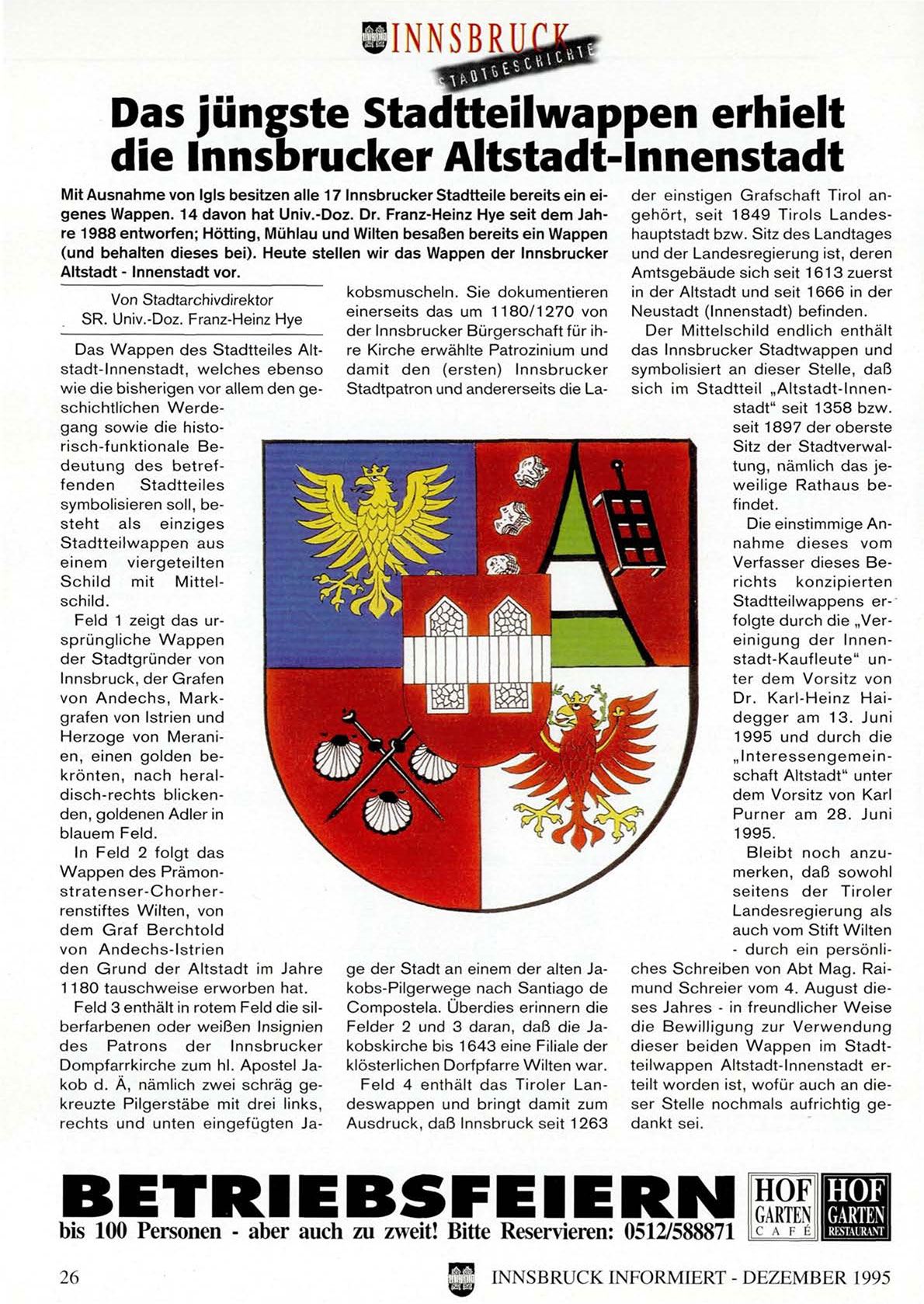 dieser beiden Wappen im Stadtteilwappen Altstadt-Innenstadt erteilt worden ist, wofür auch an dieser Stelle nochmals aufrichtig gedankt sei.