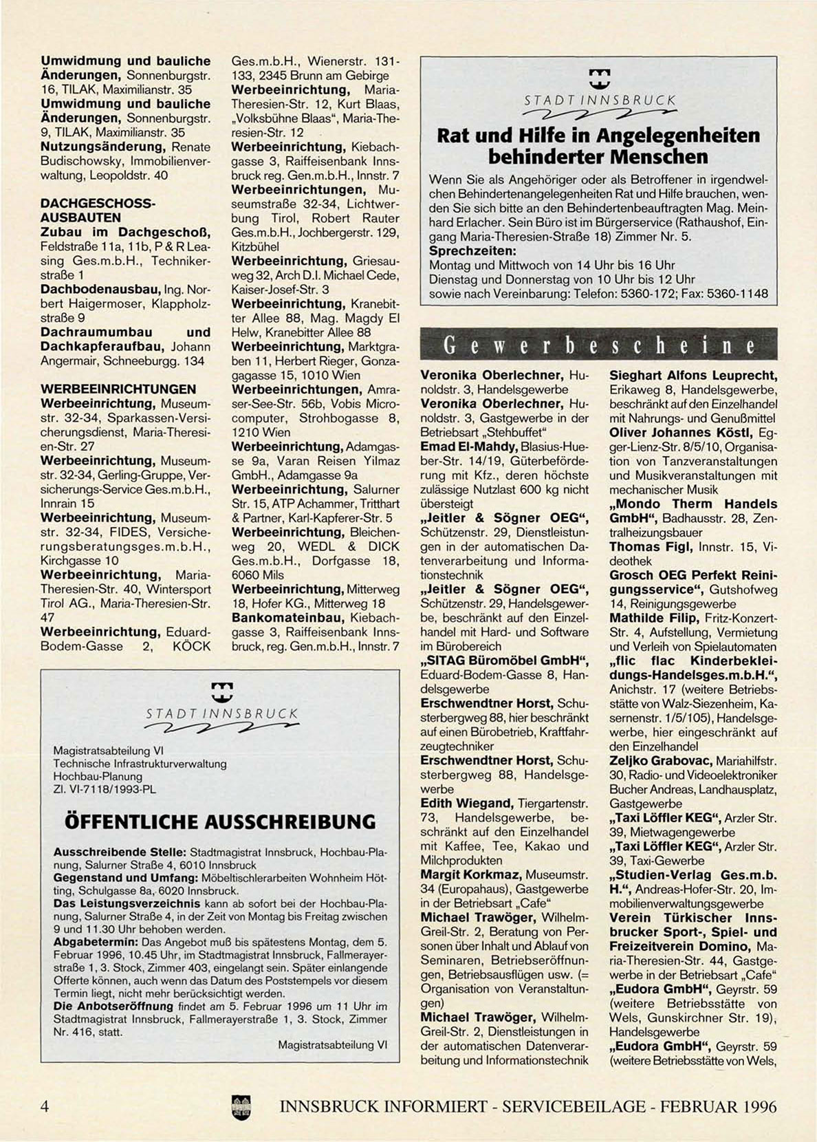 INNSBRUCK INFORMIERT - SERVICEBEILAGE - FEBRUAR 1996