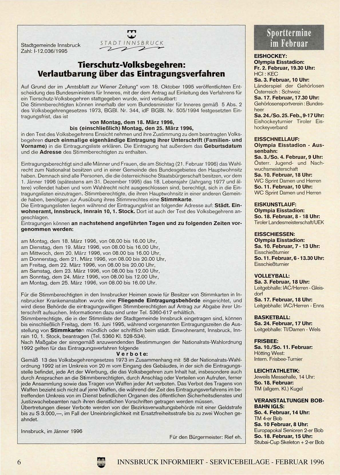 INNSBRUCK INFORMIERT - SERVICEBEILAGE - FEBRUAR 1996