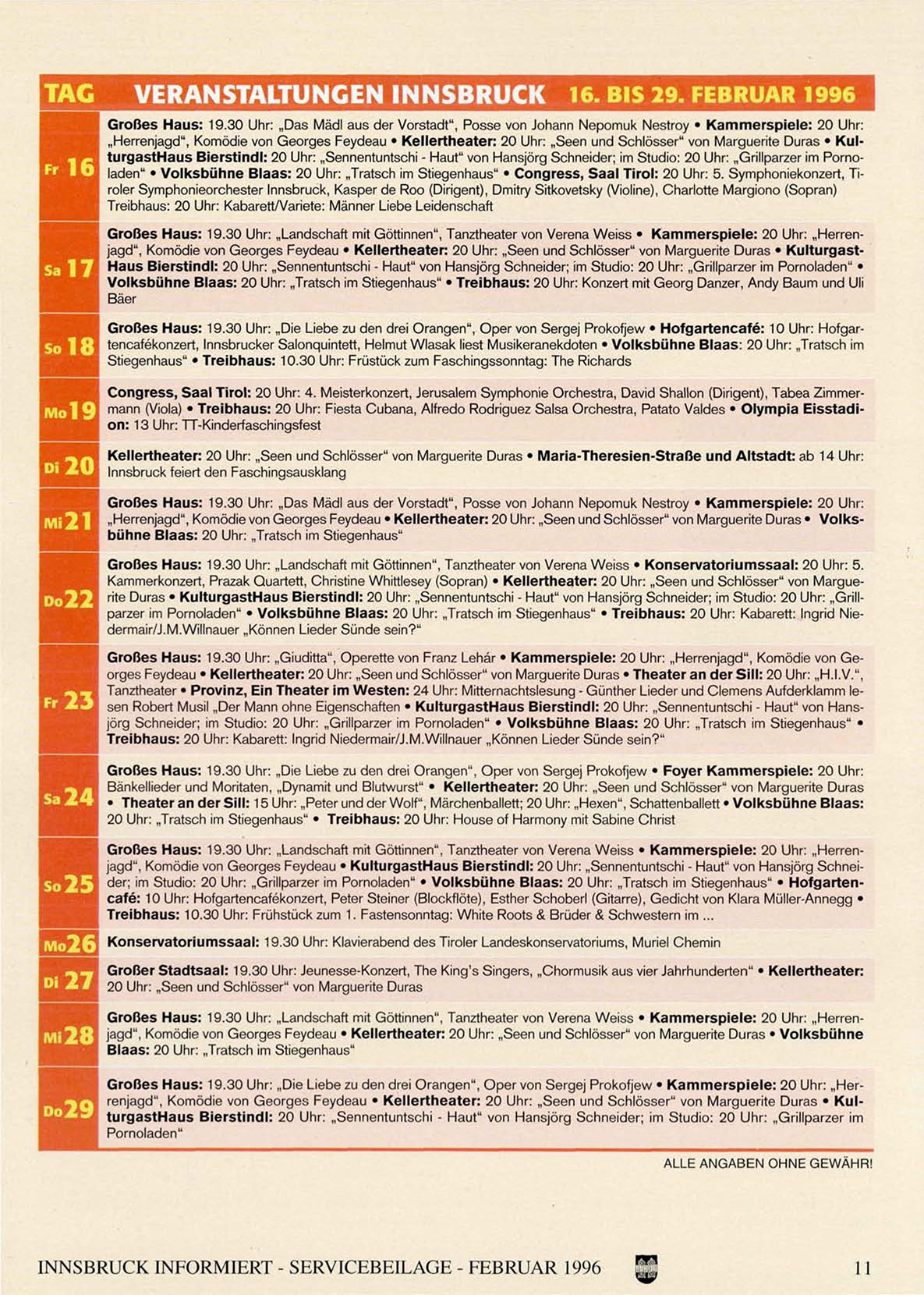 INNSBRUCK INFORMIERT - SERVICEBEILAGE - FEBRUAR 1996