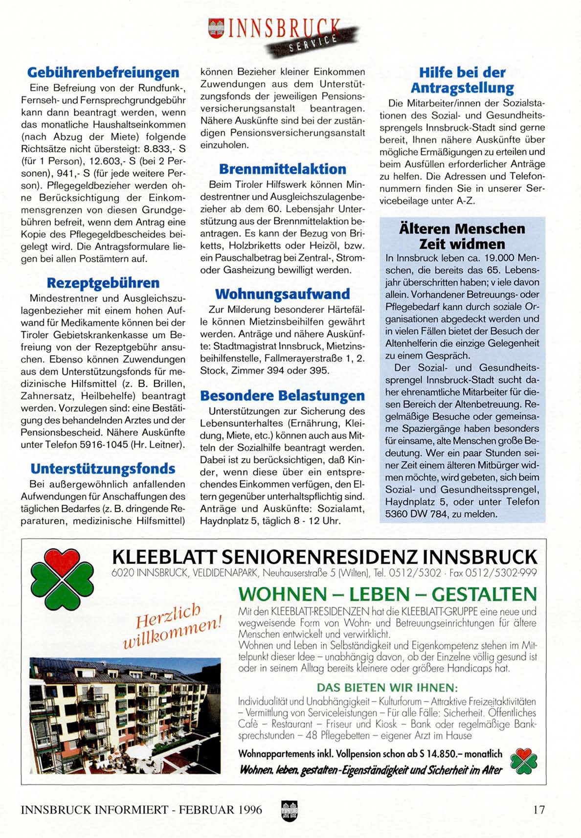 INNSBRUCK INFORMIERT - FEBRUAR 1996