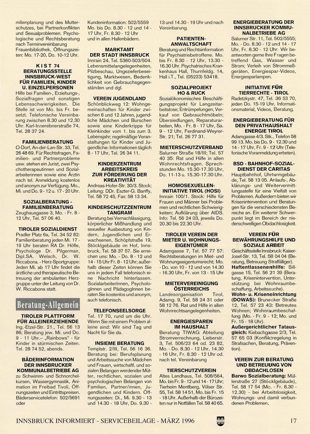INNSBRUCK INFORMIERT - SERVICEBEILAGE - MÄRZ 1996