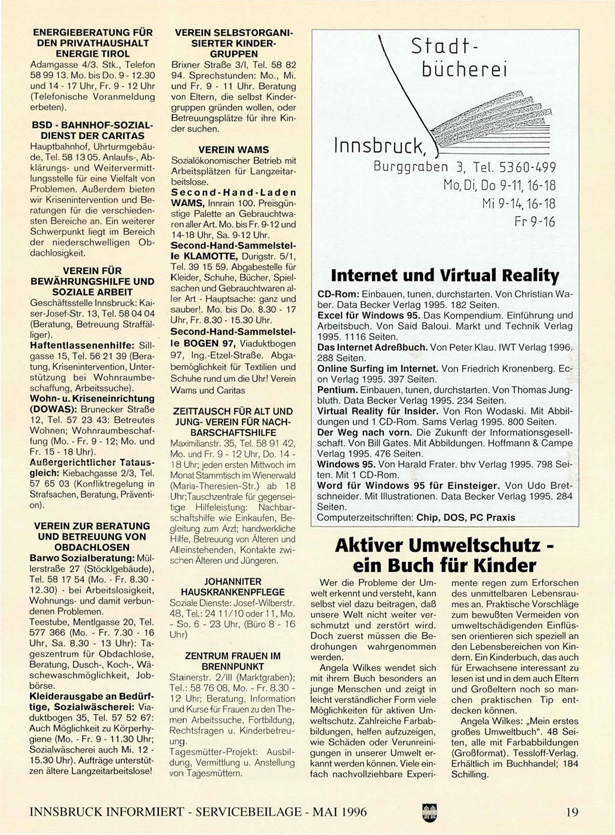 INNSBRUCK INFORMIERT - SERVICEBEILAGE - MAI 1996