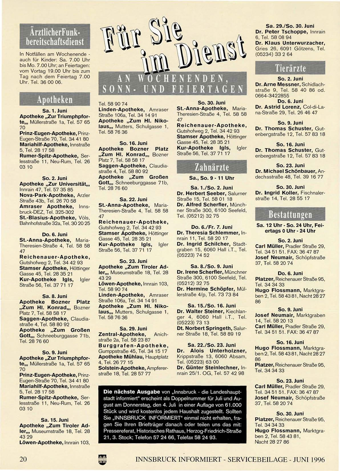 INNSBRUCK INFORMIERT - SERVICEBEILAGE - JUNI 1996
