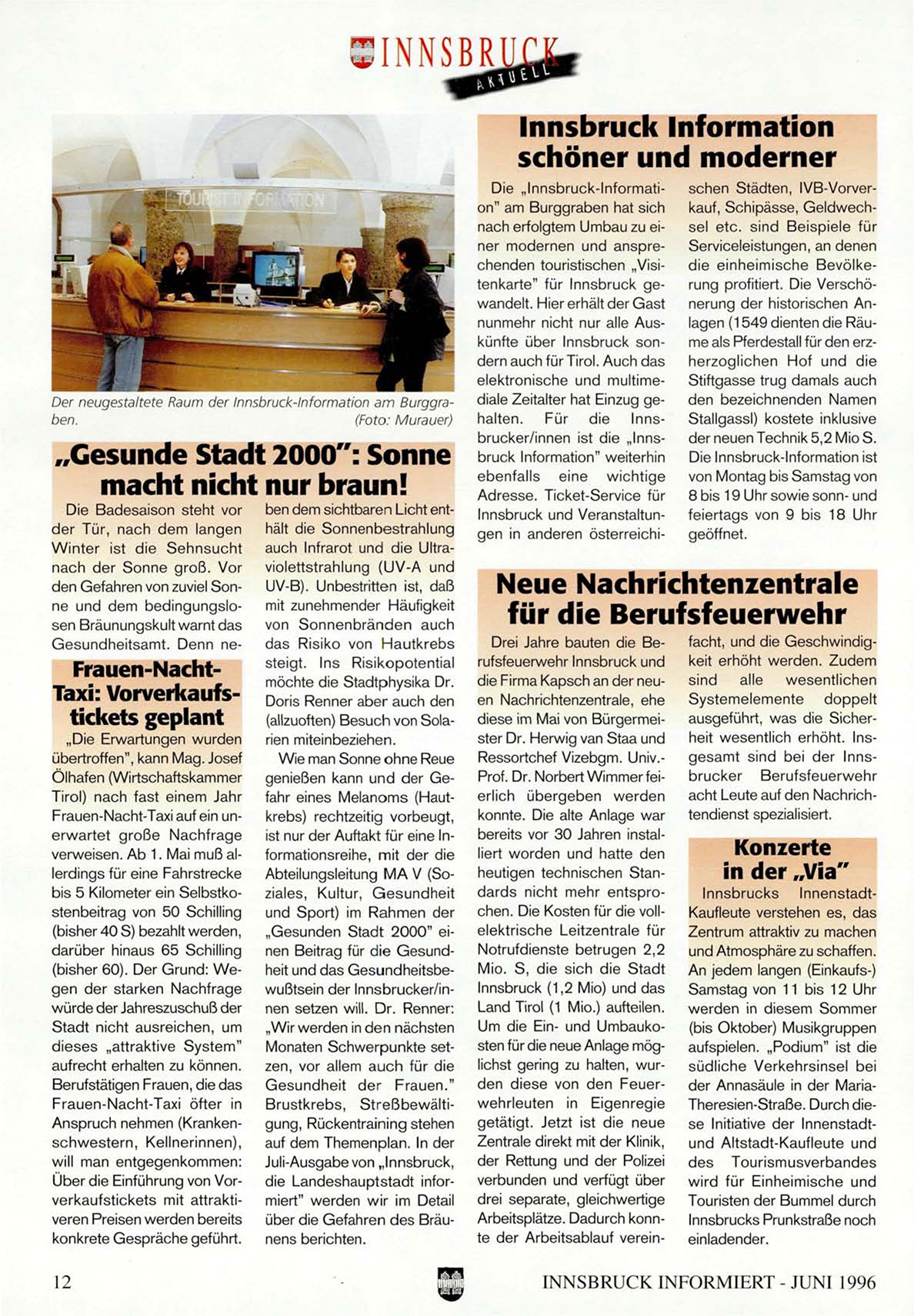 „Gesunden Stadt 2000" einen Beitrag für die Gesundheit und das Gesundheitsbewußtsein der Innsbrucker/innen setzen will. Dr. Renner: