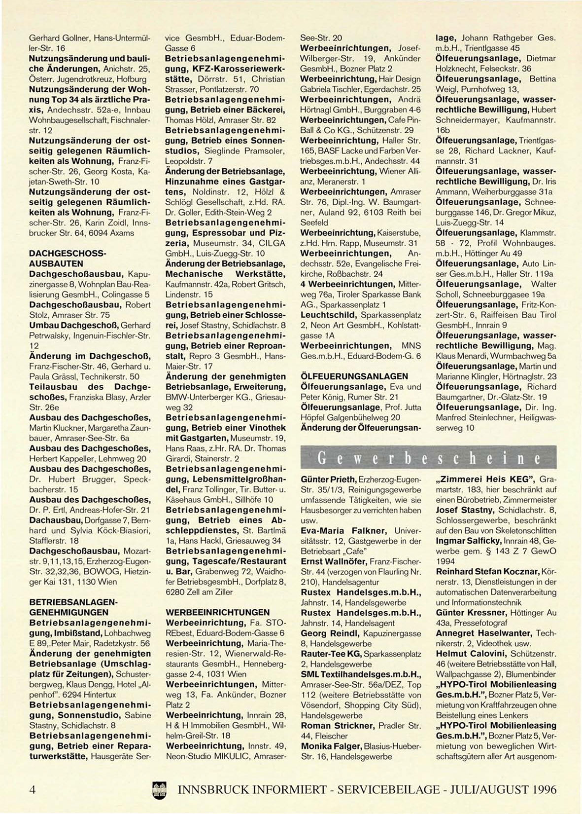 INNSBRUCK INFORMIERT - SERVICEBEILAGE - JULI/AUGUST 1996