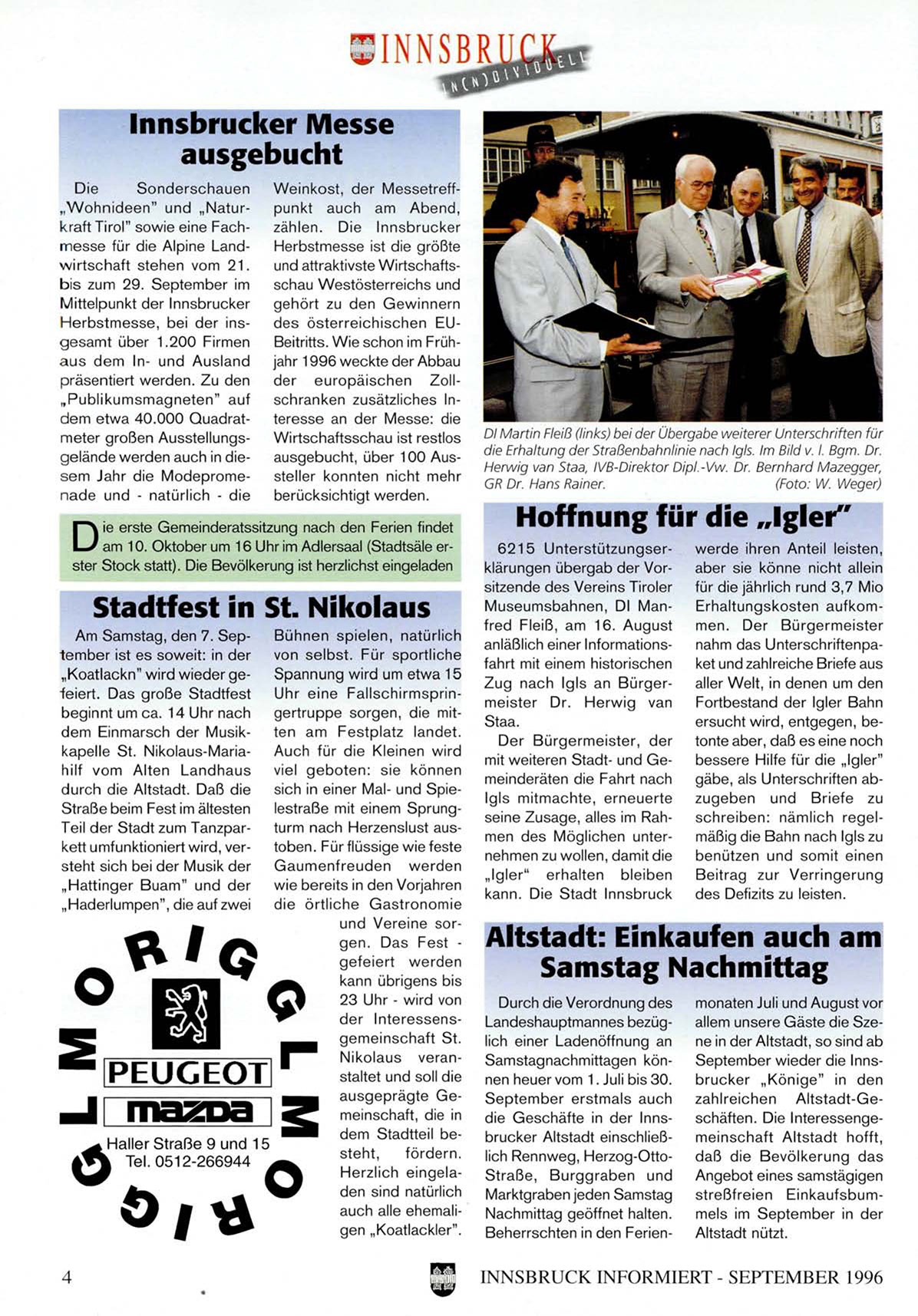 INNSBRUCK INFORMIERT - SEPTEMBER 1996