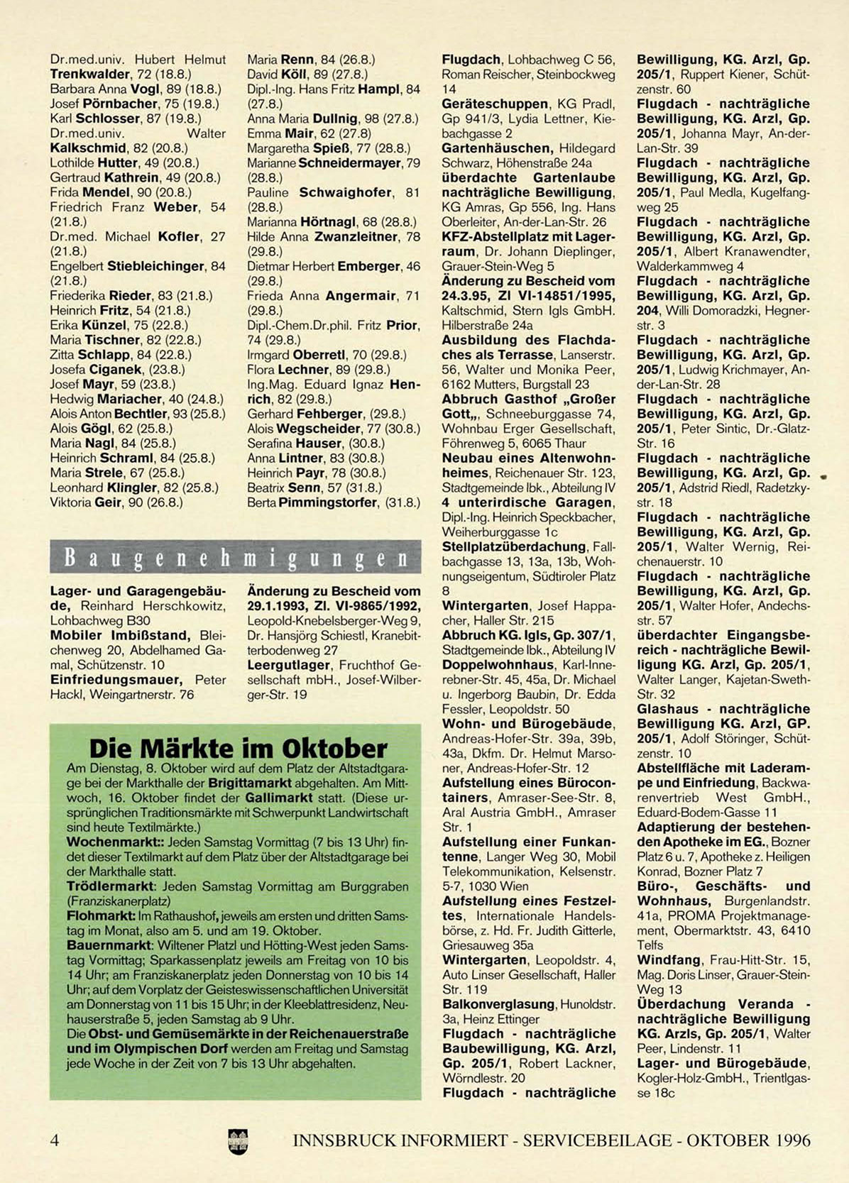 INNSBRUCK INFORMIERT - SERVICEBEILAGE - OKTOBER 1996
