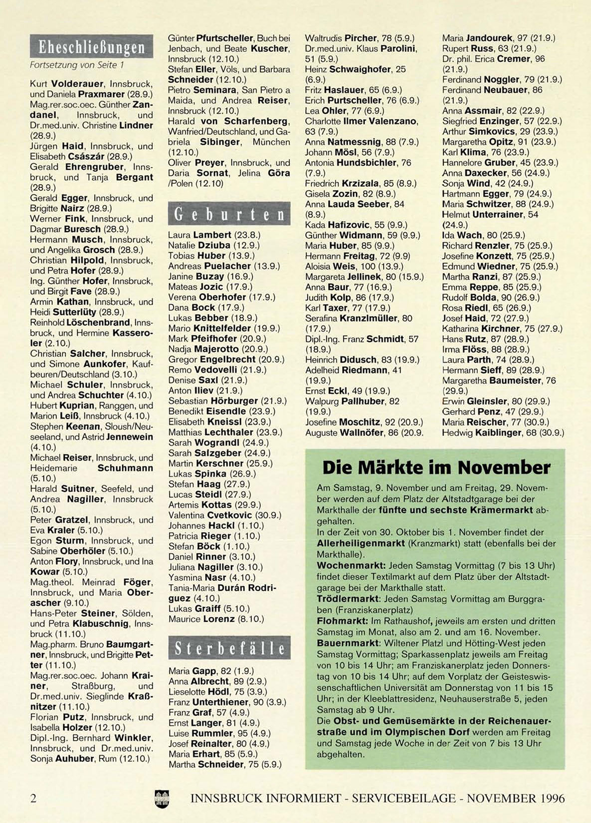 INNSBRUCK INFORMIERT - SERVICEBEILAGE - NOVEMBER 1996