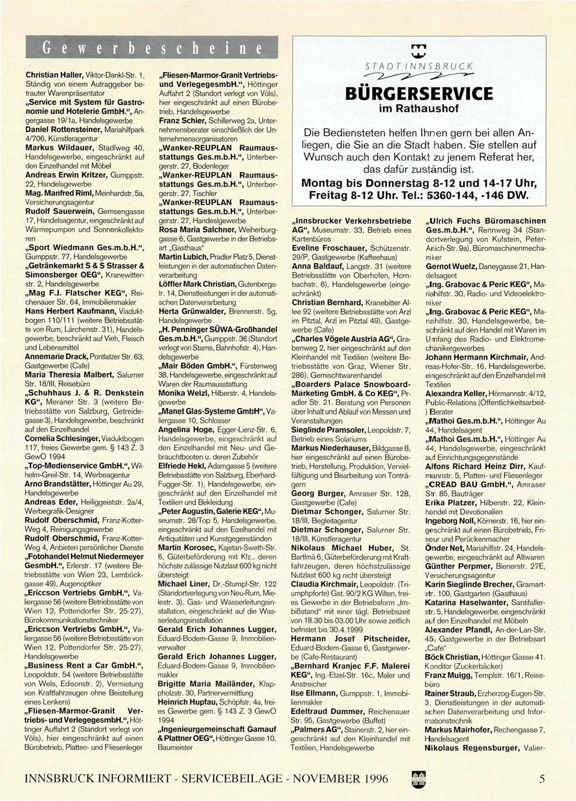INNSBRUCK INFORMIERT - SERVICEBEILAGE - NOVEMBER 1996