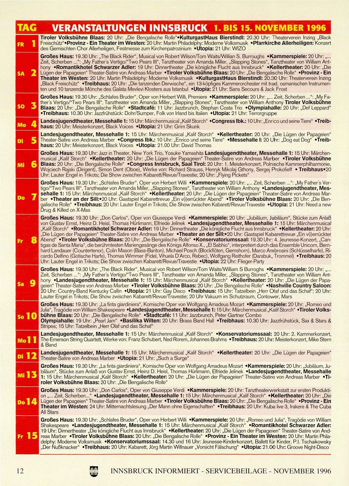 VERANSTALTUNGEN INNSBRUCK 1. BIS 15. NOVEMBER 1996