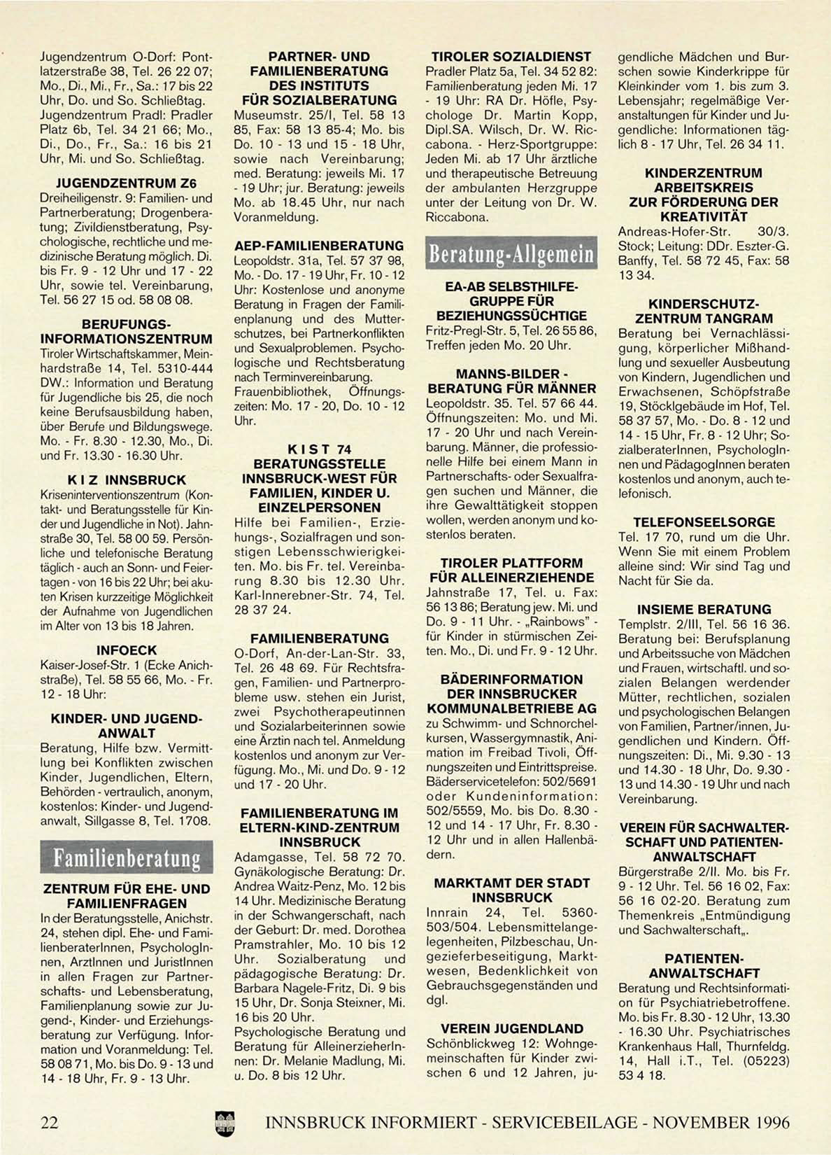 INNSBRUCK INFORMIERT - SERVICEBEILAGE - NOVEMBER 1996