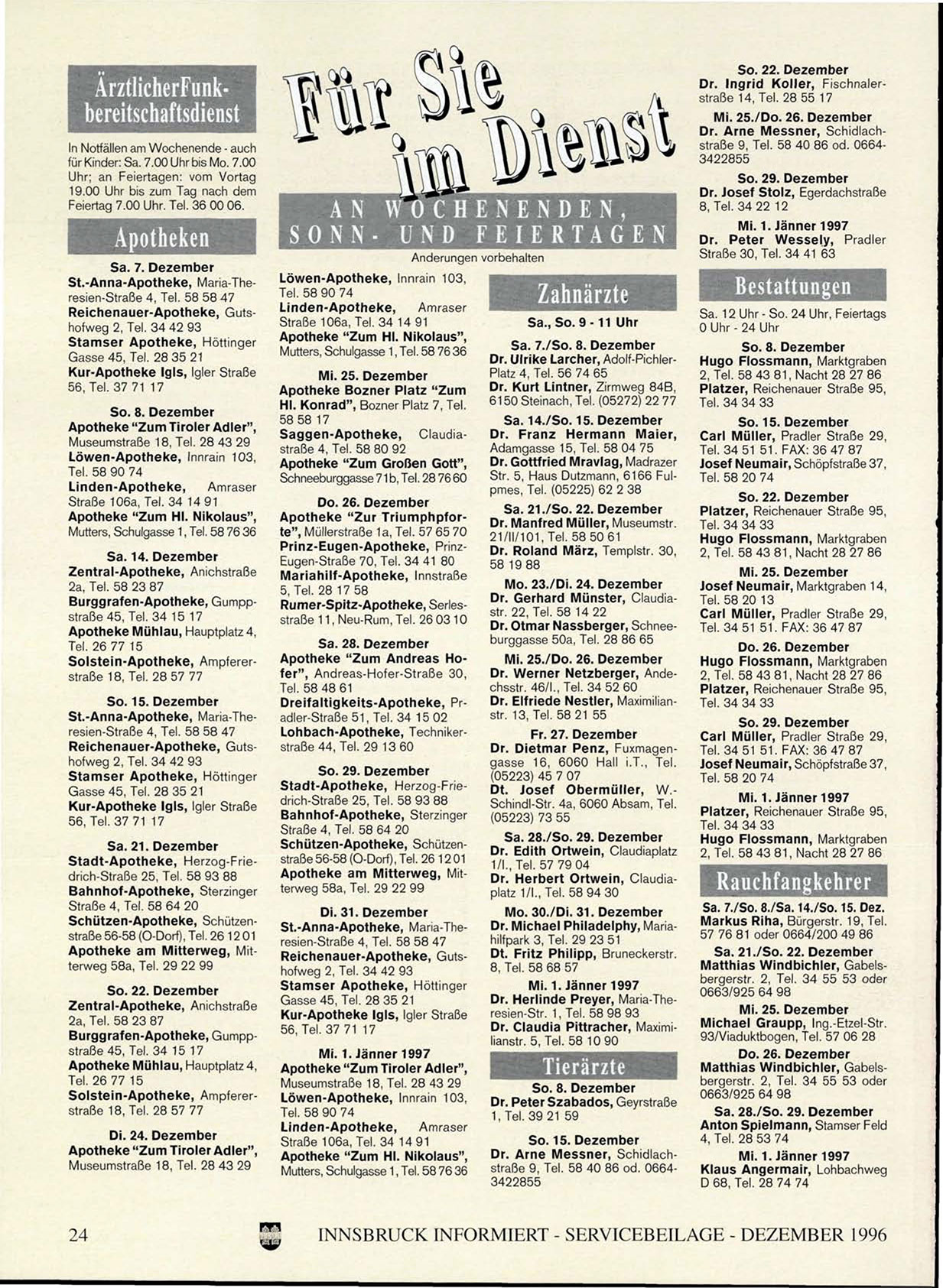 INNSBRUCK INFORMIERT - SERVICEBEILAGE - DEZEMBER 1996