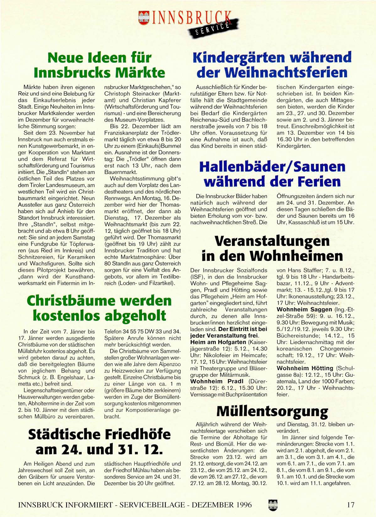 INNSBRUCK INFORMIERT - SERVICEBEILAGE - DEZEMBER 1996
