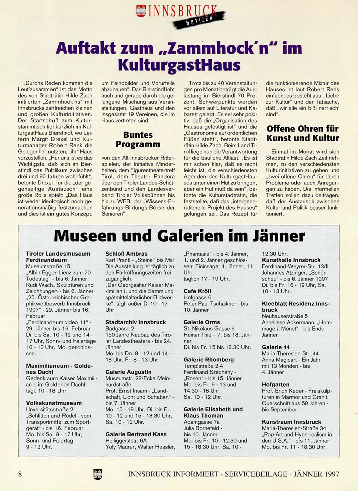 INNSBRUCK INFORMIERT - SERVICEBEILAGE - JÄNNER 1997