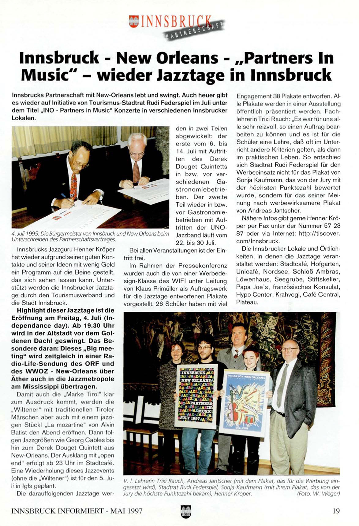 4. Juli 1995: Die Bürgermeister von Innsbruck und New Orleans beim Jazzband läuft vom